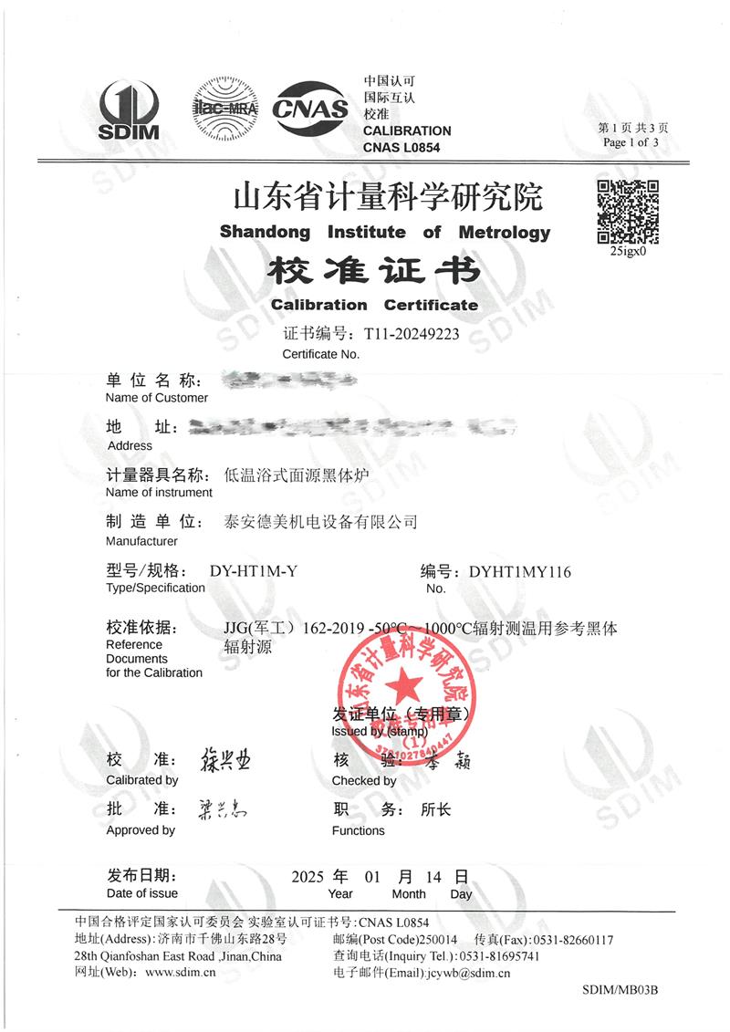 | 上一條:中溫干體爐(室溫+5~400℃)校準證書(shū) | 下一條:智能干體儀(六位半精度)校準證書(shū) |