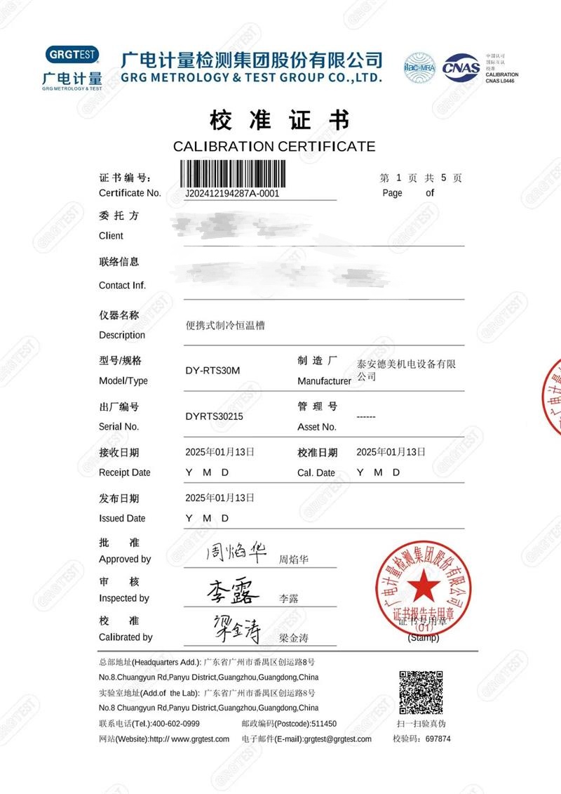 | 上一條:便攜式制冷恒溫槽(-30-105℃)校準證書(shū) | 下一條:智能干體儀(六位半精度)校準證書(shū) |