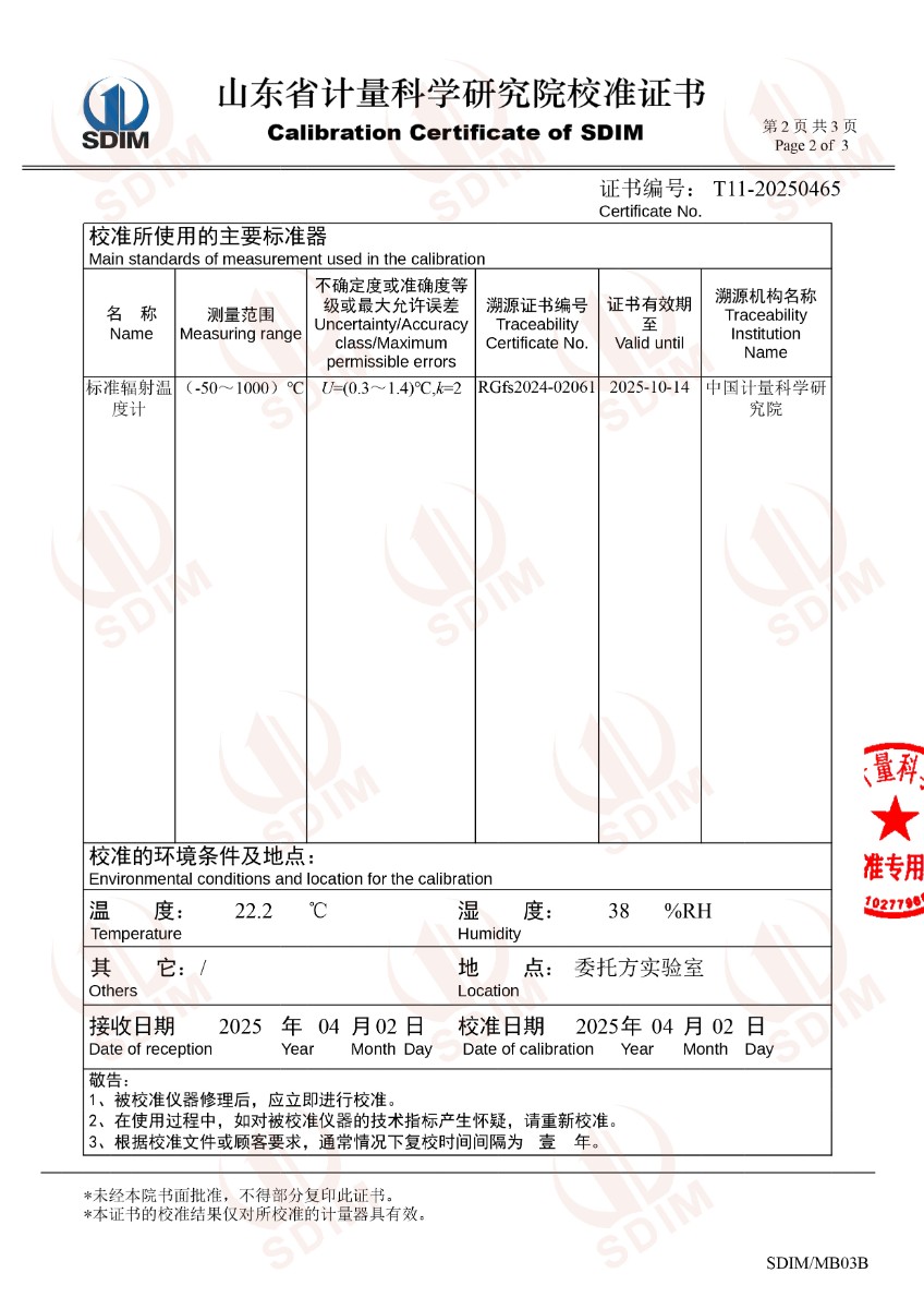 低溫浴式面源黑體爐(-50-80℃)校準證書(shū) 2025-4-9 本文被閱讀 3711 次