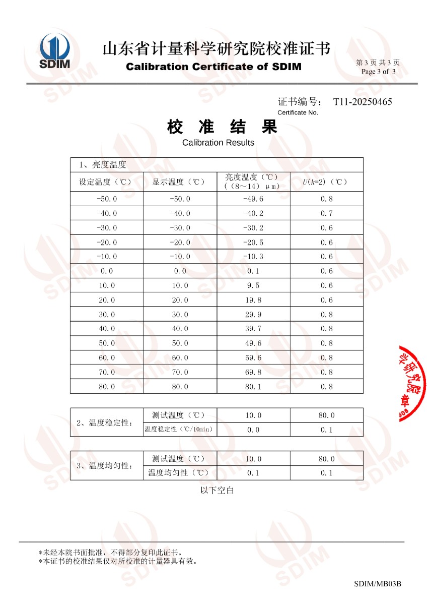 低溫浴式面源黑體爐(-50-80℃)校準證書(shū)