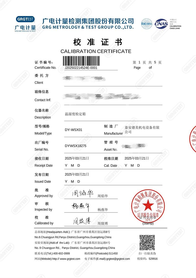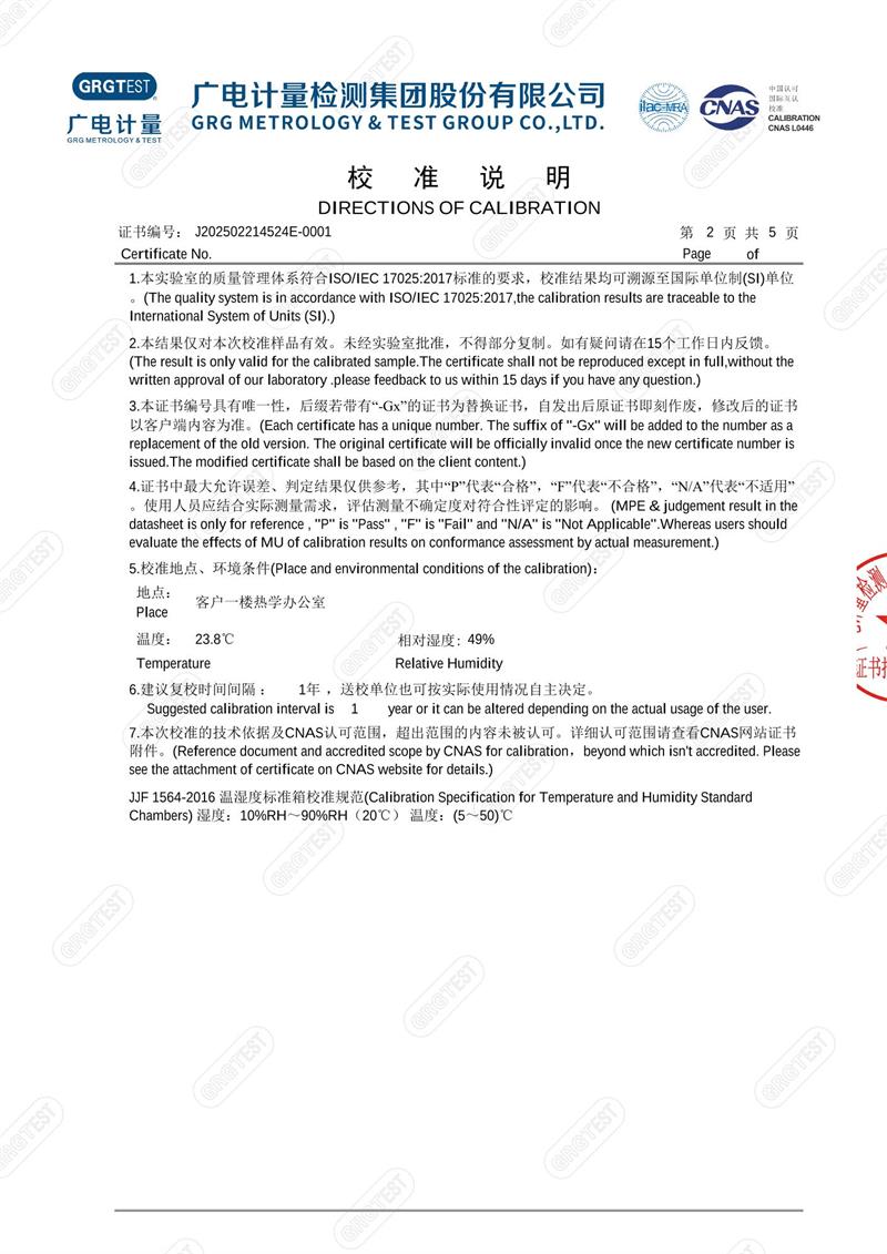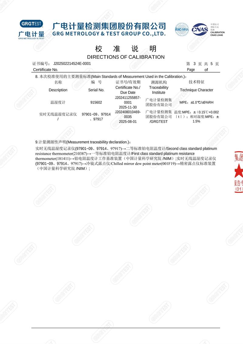 | 上一條:溫濕度檢定箱18277(-5~65℃)校準證書(shū) | 下一條:智能干體儀(六位半精度)校準證書(shū) |