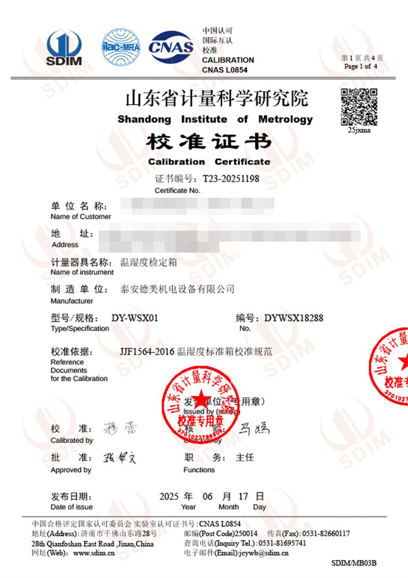 溫濕度檢定箱(-5-65℃)校準證書(shū) 2025-6-20 本文被閱讀 3260 次