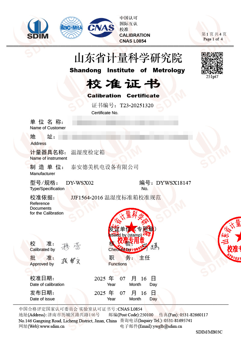 | 上一條:DY-HTM-X-180差分黑體爐(差分溫度:-30℃~125℃ ,絕 對溫度:-5℃~150℃) | 下一條:溫濕度檢定箱校準證書(shū) |
