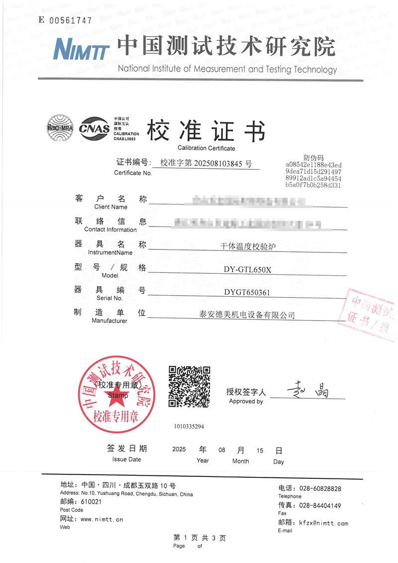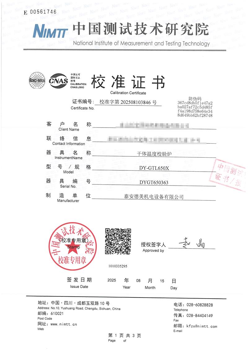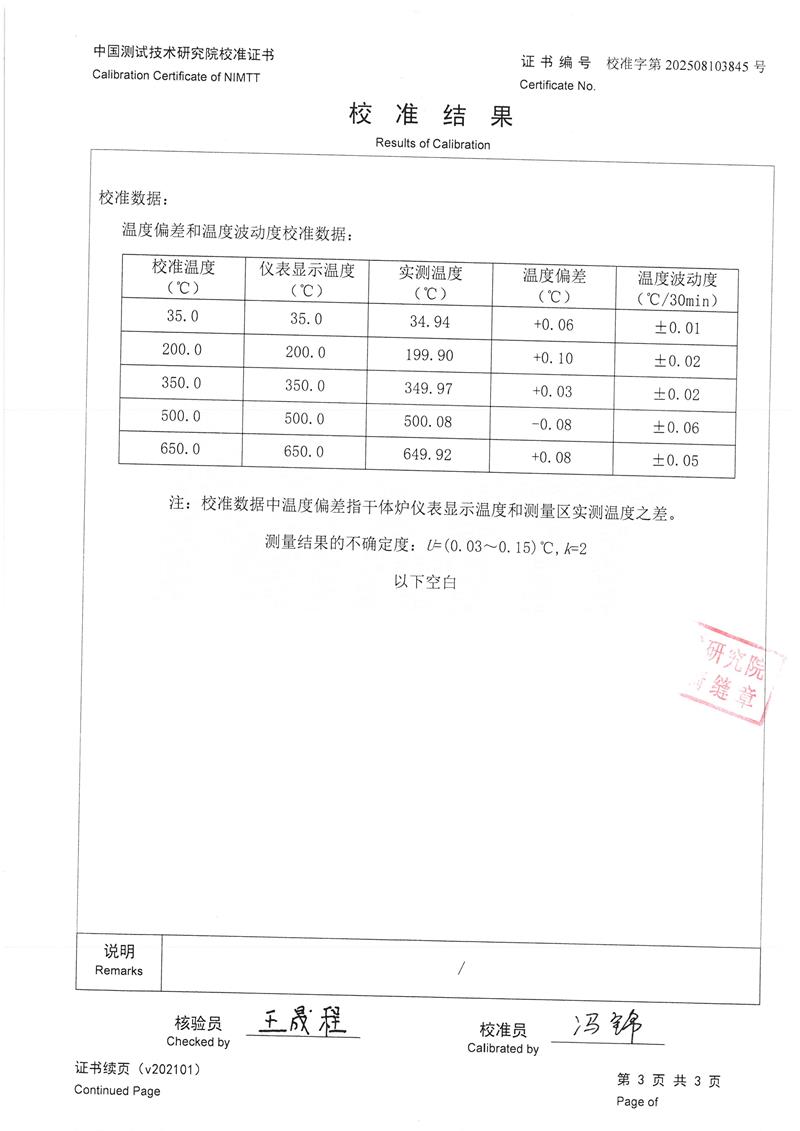 | 上一條:高精度低溫黑體(-10-100℃)校準證書(shū) | 下一條:智能干體儀(六位半精度)校準證書(shū) |