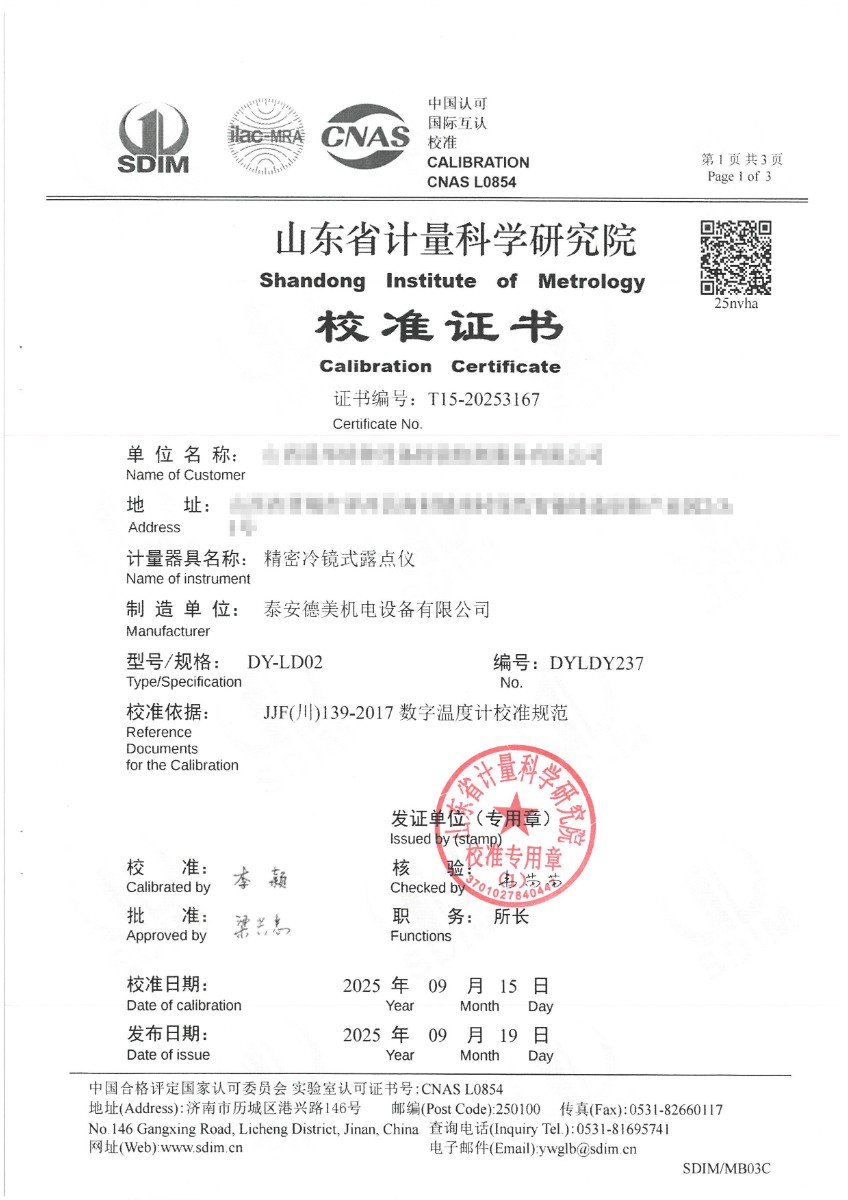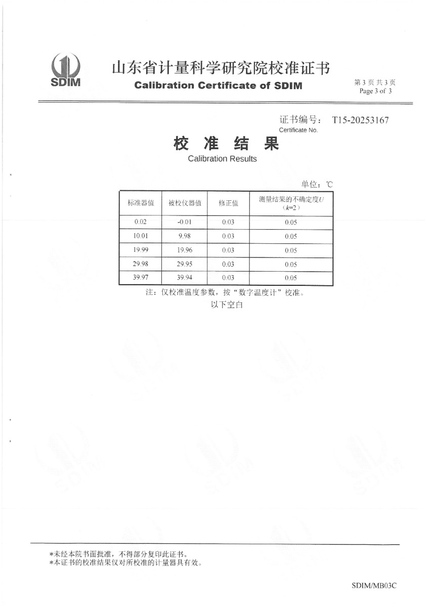 | 上一條:高精度數字溫度計(-20-100℃)校準證書(shū) | 下一條:智能干體儀(六位半精度)校準證書(shū) |