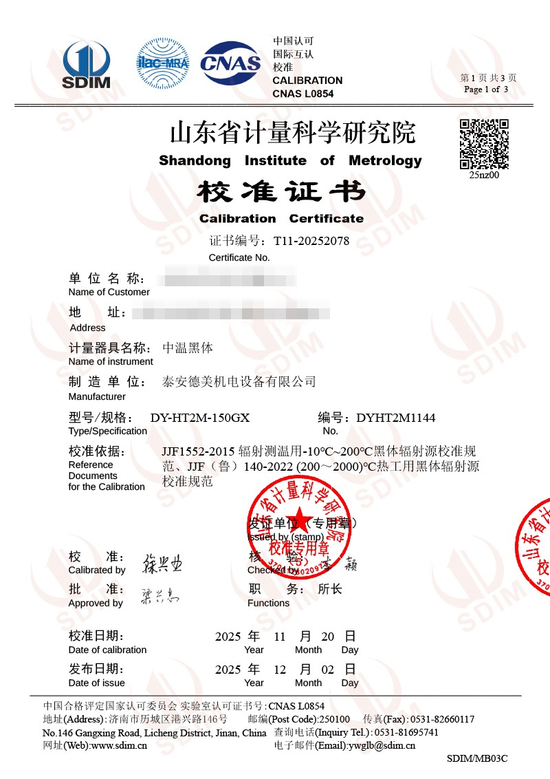 中溫黑體校準證書(shū) 2025-12-4 本文被閱讀 70 次