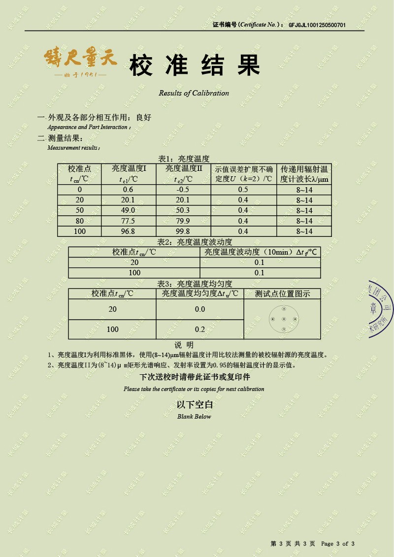 差分黑體爐(0-100℃)校準證書(shū) 2025-5-9 本文被閱讀 3329 次