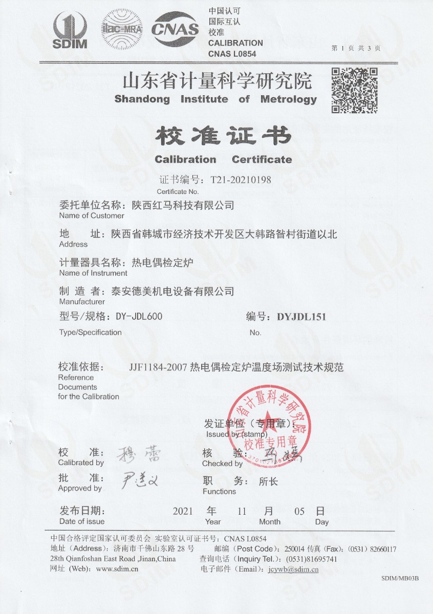 陜西紅馬有限公司-熱電偶檢定爐 2021-12-27 本文被閱讀 14451 次