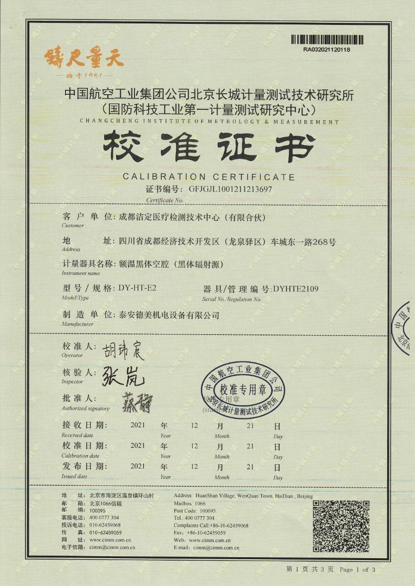 成都潔定醫療檢測技術(shù)-額溫黑體空腔 2022-1-4 本文被閱讀 11106 次