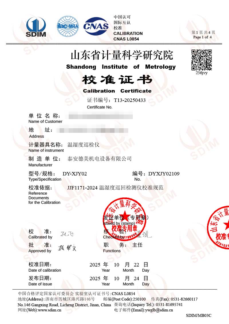 溫濕度巡檢儀校準證書(shū) 2025-10-30 本文被閱讀 645 次