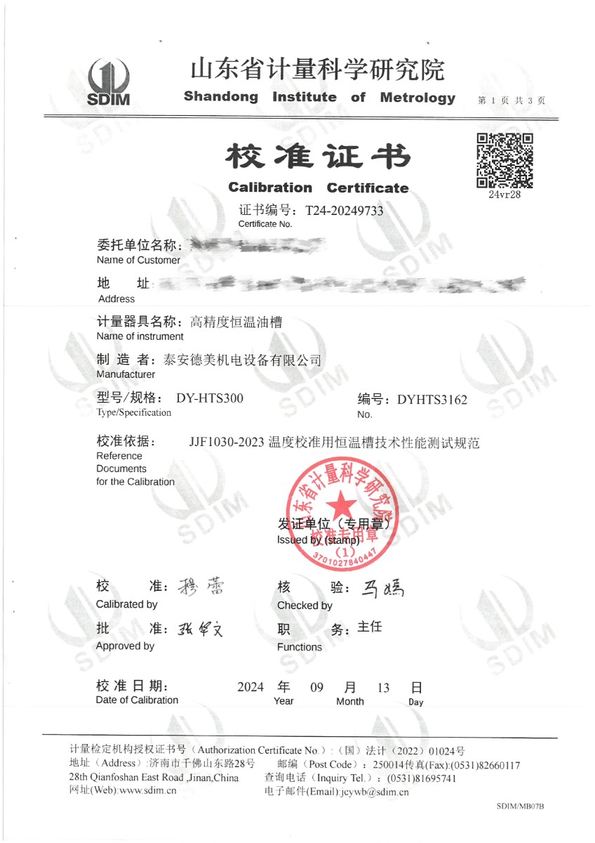 高精度恒溫油槽(70~300)℃校準證書(shū) 2024-9-25 本文被閱讀 7006 次