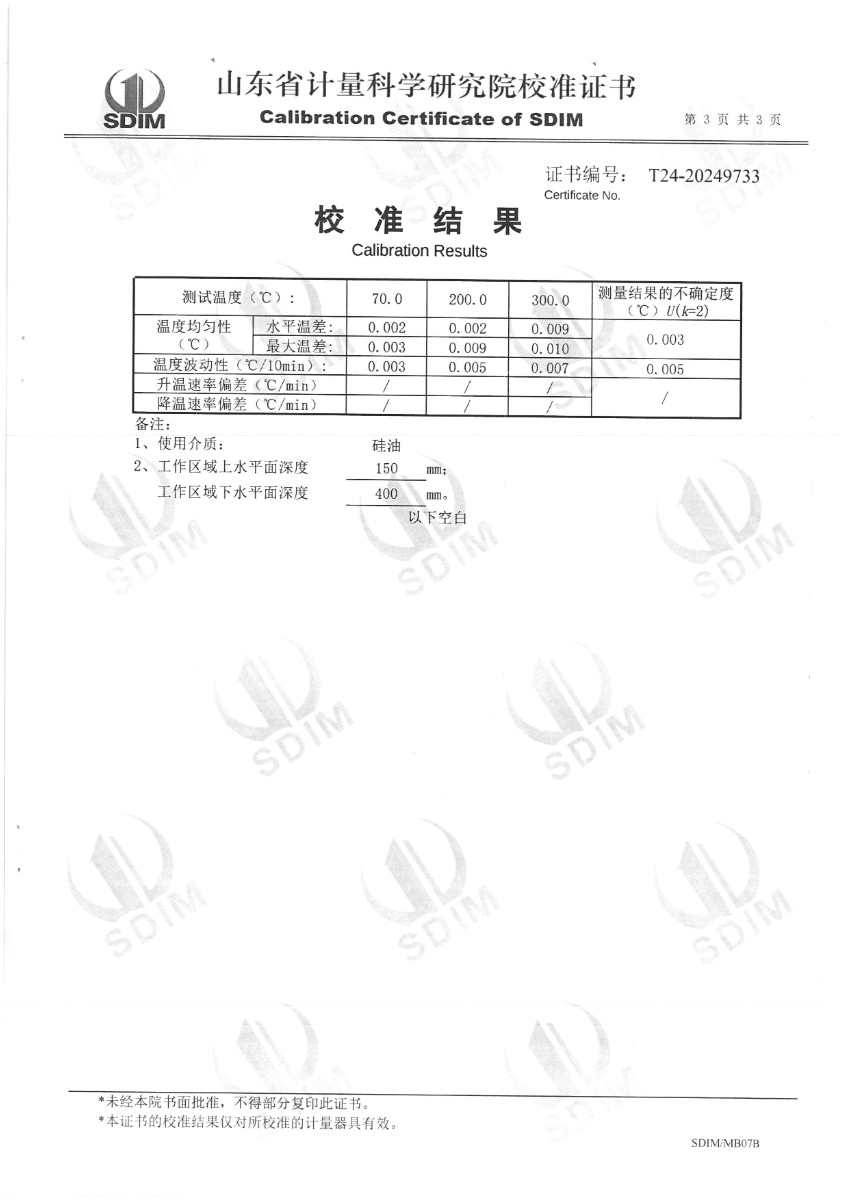 高精度恒溫油槽(70~300)℃校準證書(shū)
