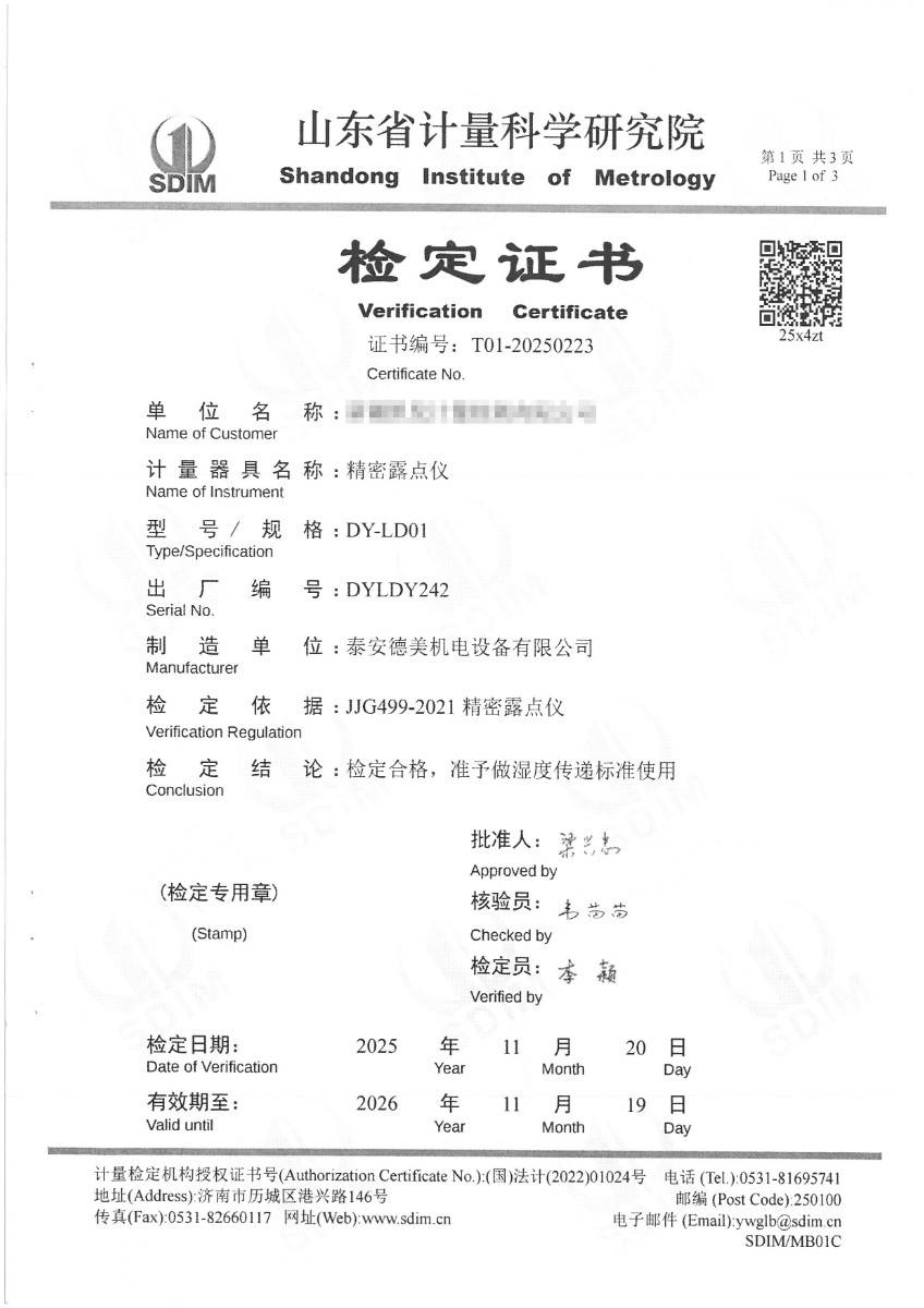 露點(diǎn)儀檢定、校準證書(shū) 2025-12-4 本文被閱讀 101 次