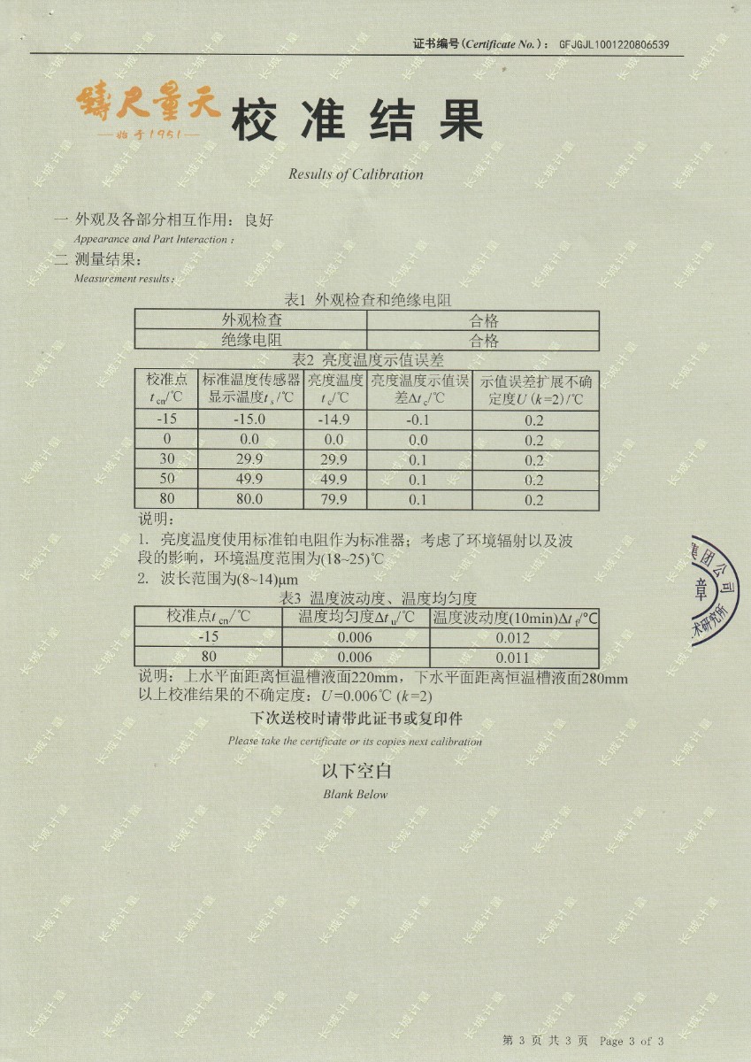| 上一條:東營(yíng)市安全工器具質(zhì)量檢測有限公司-黑體輻射源DY-HT2 | 下一條:溫濕度檢定箱校準證書(shū) |