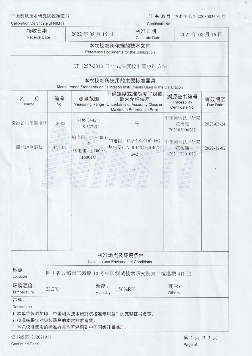 | 上一條:東營(yíng)市安全工器具質(zhì)量檢測有限公司-黑體輻射源DY-HT1-Y | 下一條:溫濕度檢定箱校準證書(shū) |
