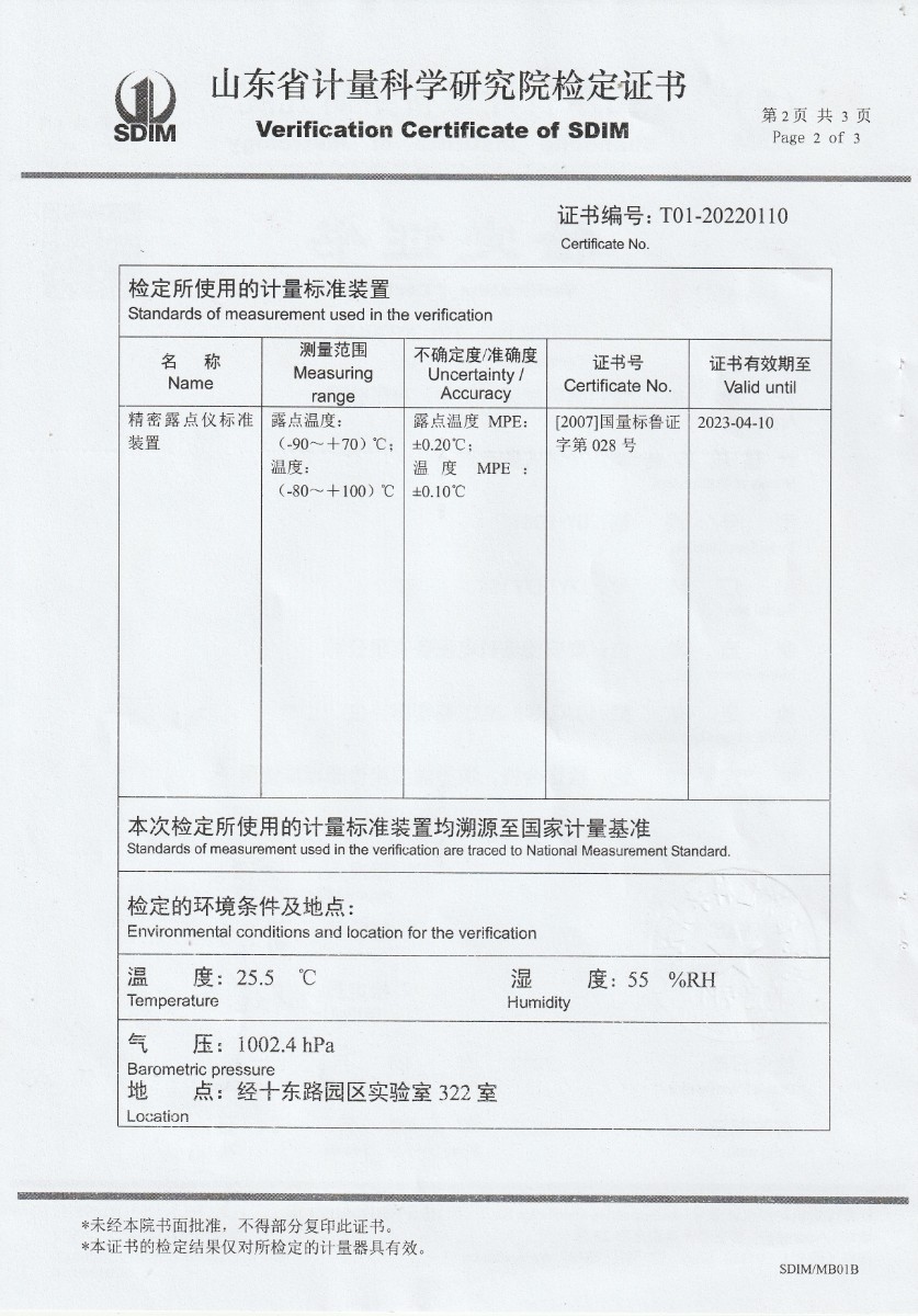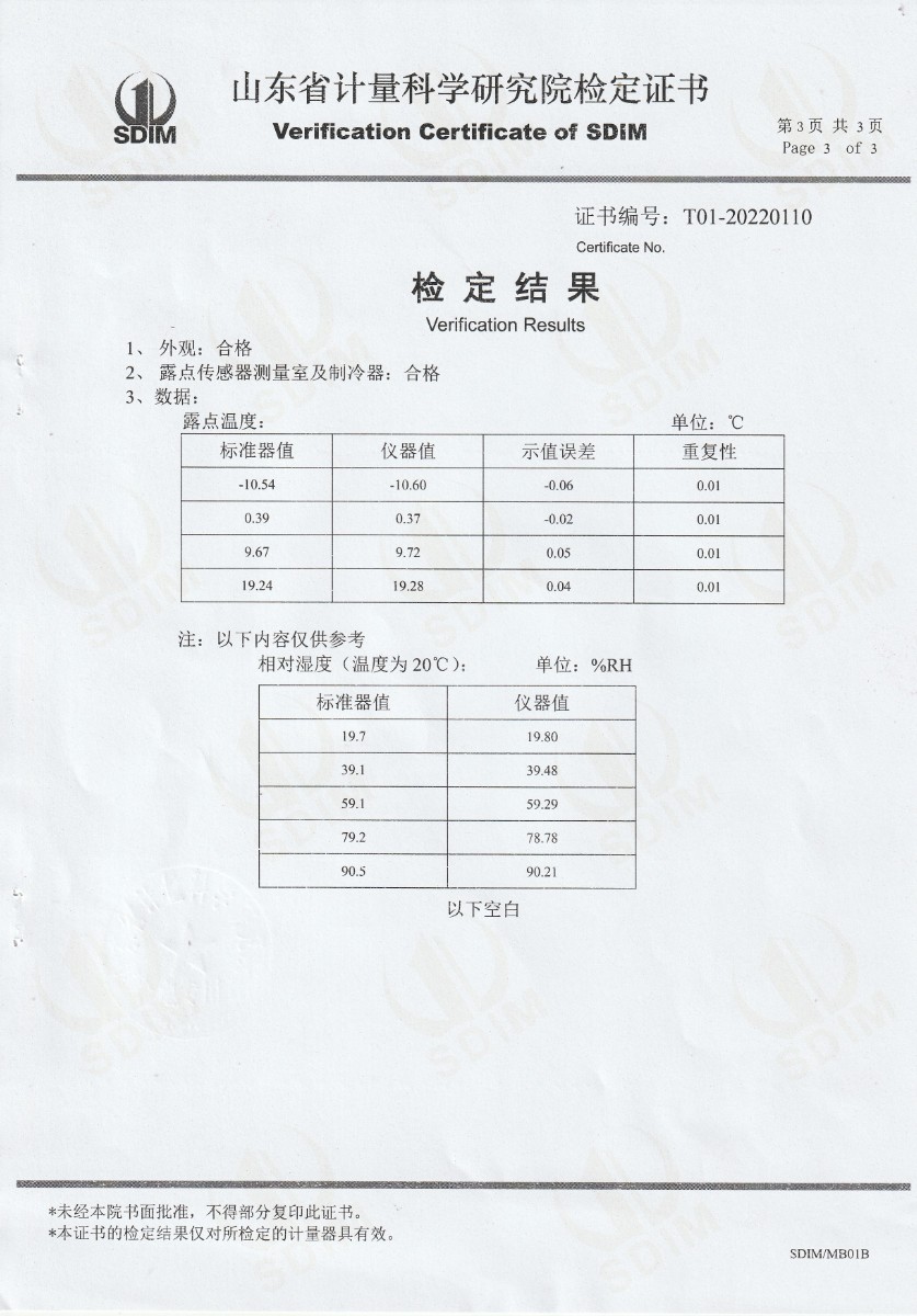 晶科能源(肥東)有限公司-冷鏡式露點(diǎn)儀檢定證書(shū) 2022-9-26 本文被閱讀 15727 次