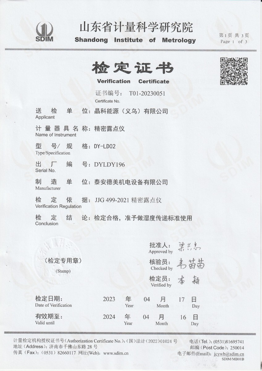 | 上一條:廣東先導稀材股份有限公司 干體溫度校驗爐 校準證書(shū) | 下一條:露點(diǎn)儀檢定、校準證書(shū) |