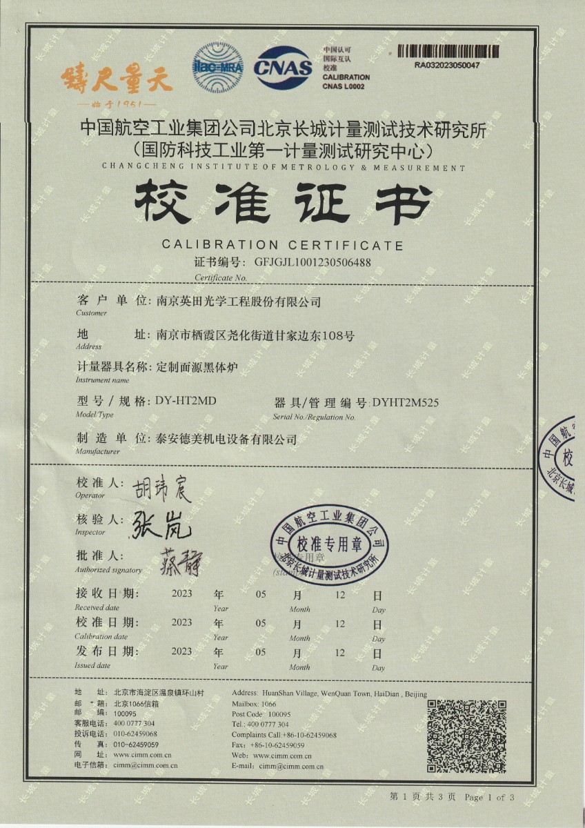 | 上一條:魯南中聯(lián)水泥有限公司 干體式溫度校準器 校準證書(shū) | 下一條:溫濕度檢定箱校準證書(shū) |