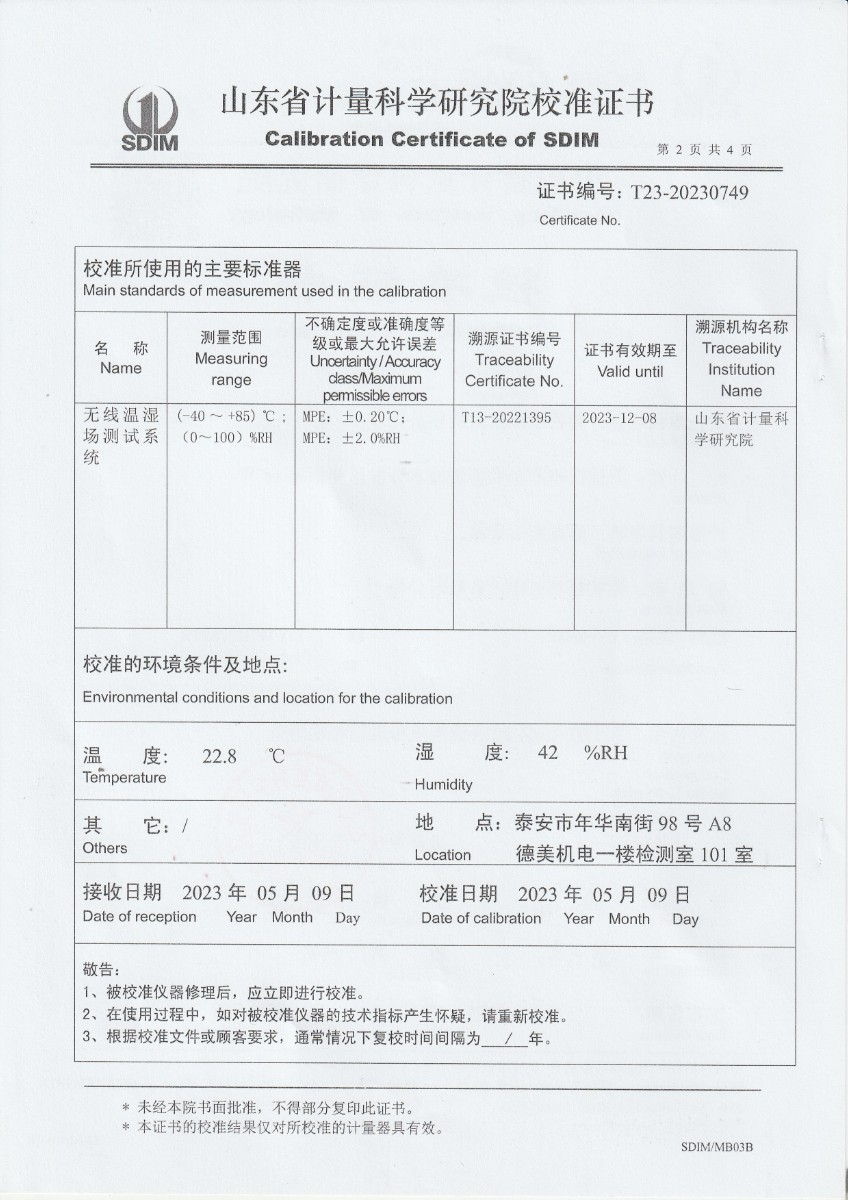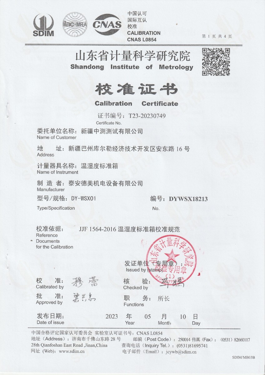 | 上一條:越南晶科能源實(shí)業(yè)有限責任公司 溫濕度標準箱 校準證書(shū) | 下一條:溫濕度檢定箱校準證書(shū) |