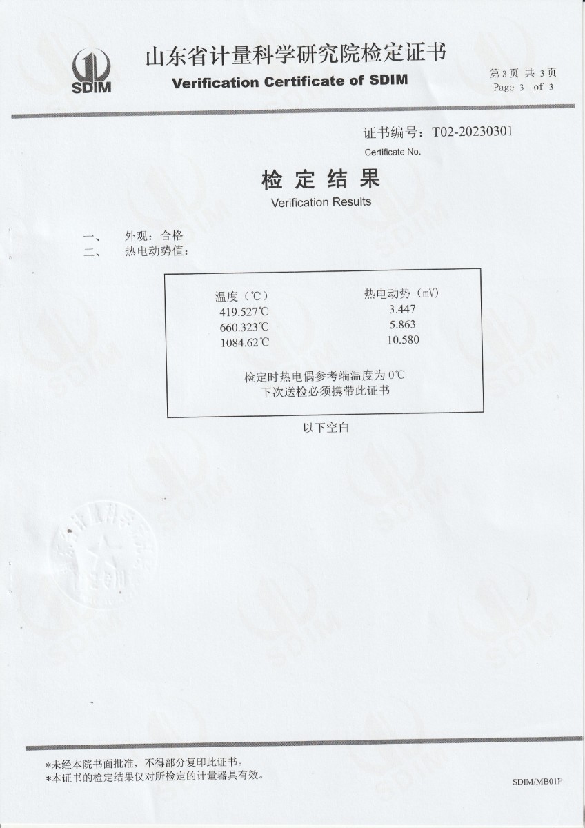 鉑熱電偶S23-7081檢定證書(shū) 2023-9-7 本文被閱讀 6908 次