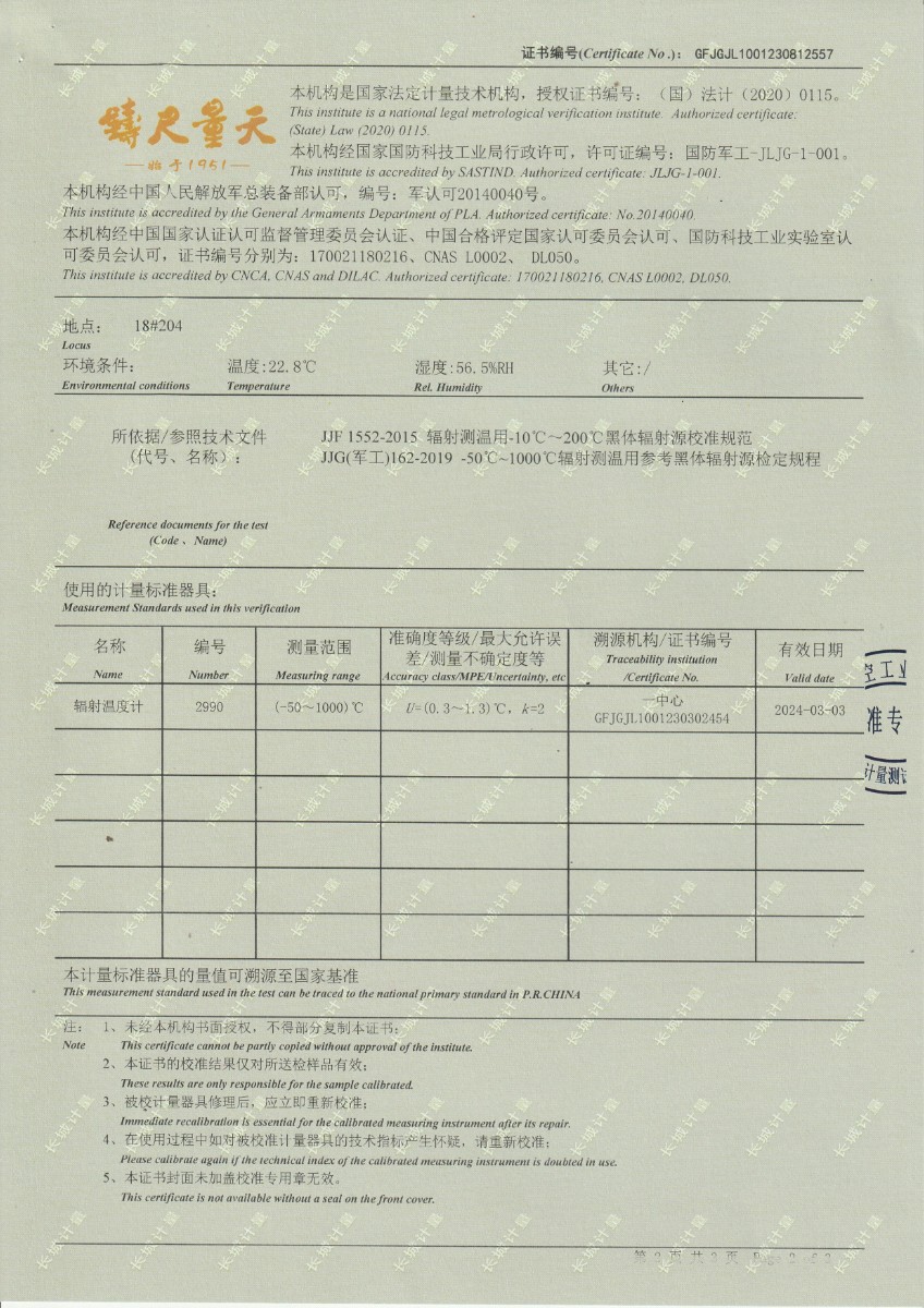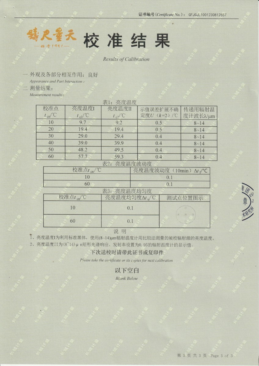 面源黑體爐DYHT1M141校準證書(shū) 2023-9-20 本文被閱讀 8801 次