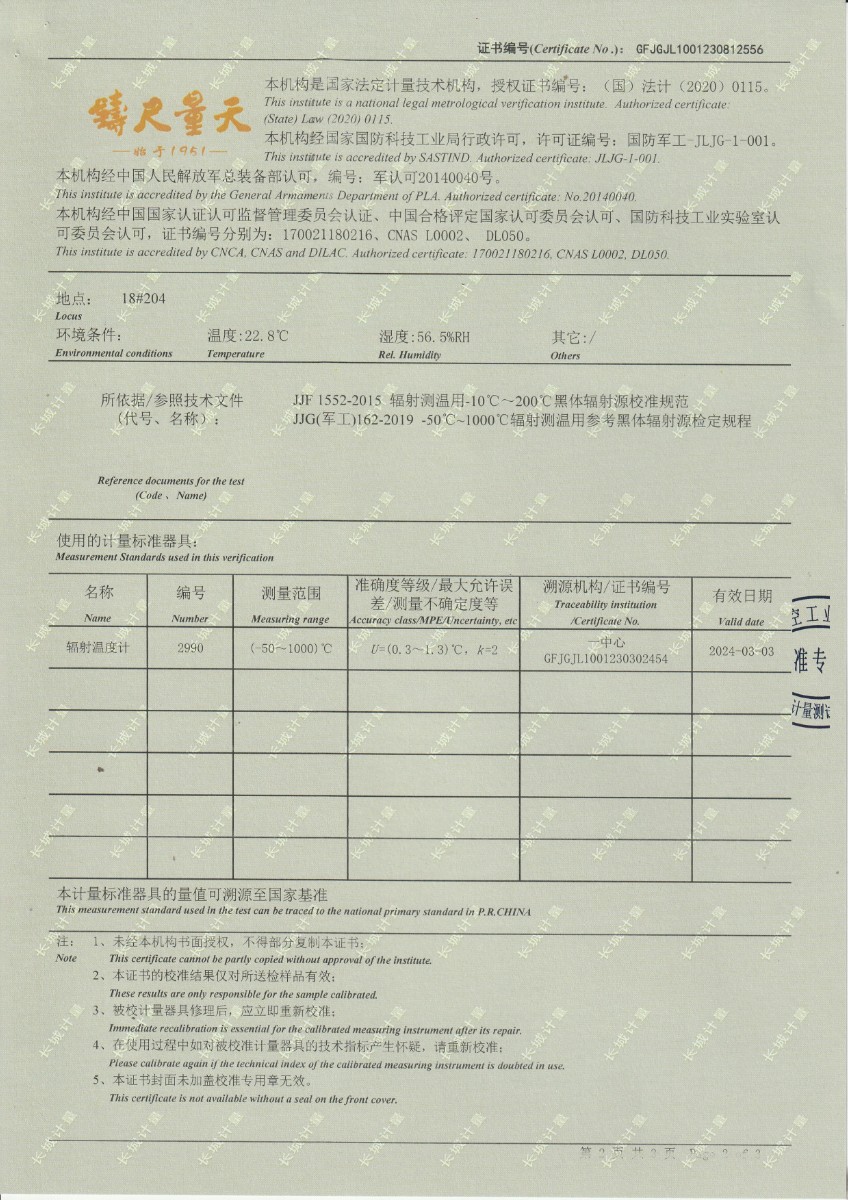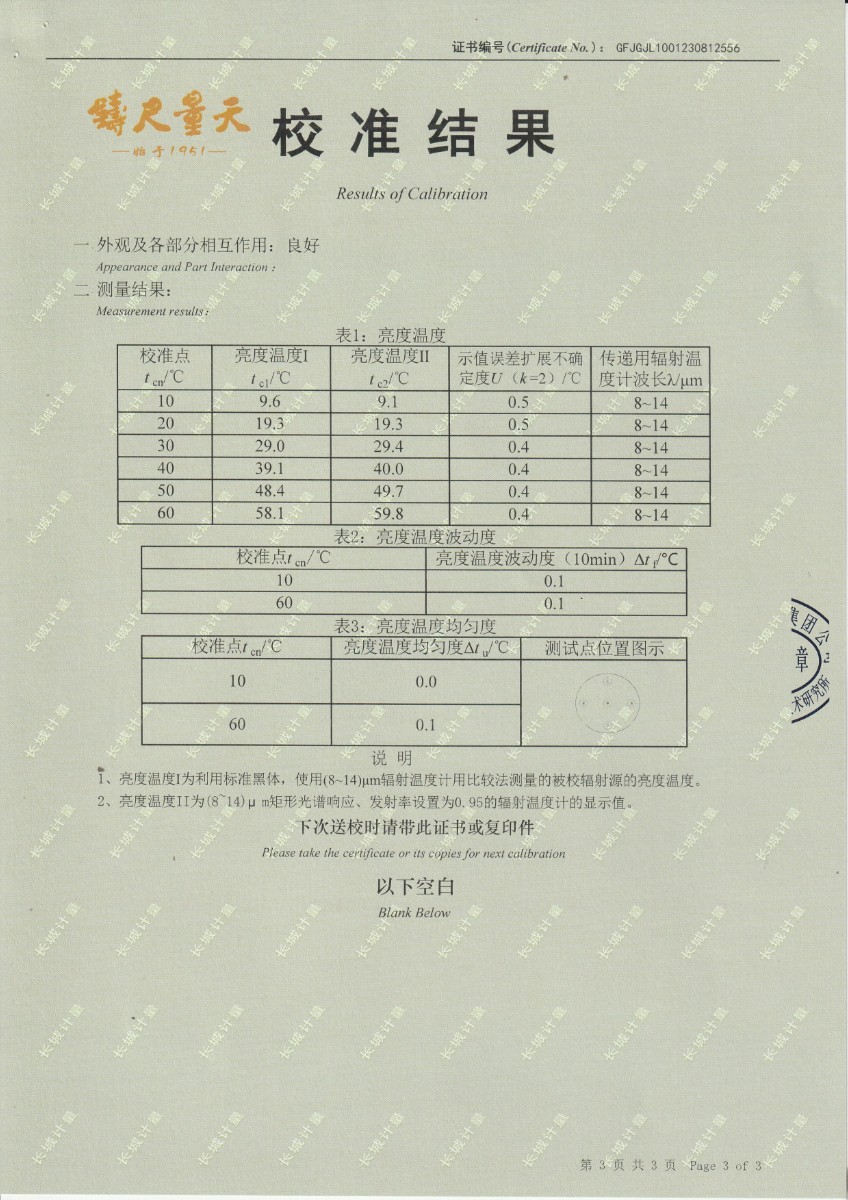 面源黑體爐DYHT1M140校準證書(shū) 2023-9-20 本文被閱讀 10185 次