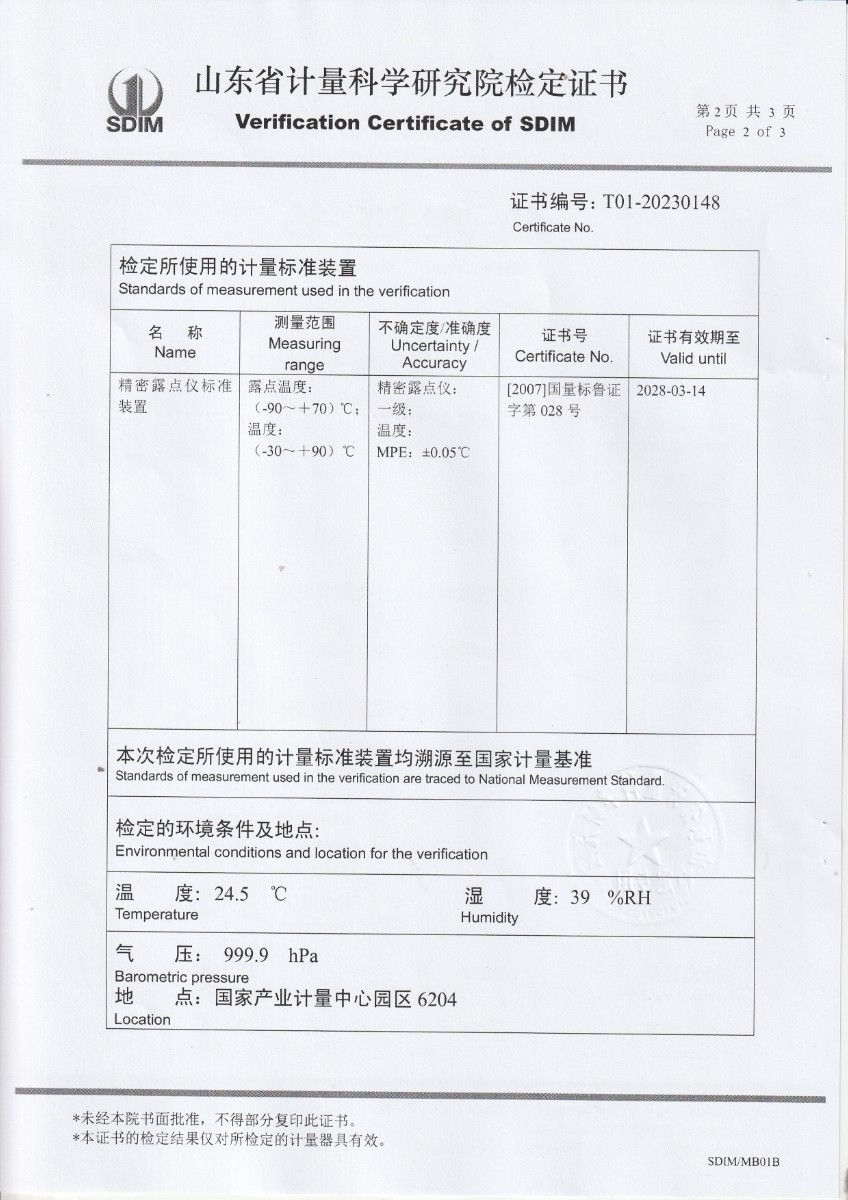 冷鏡式露點(diǎn)儀檢定證書(shū)