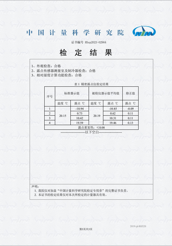 露點(diǎn)儀檢定證書(shū) 2023-11-9 本文被閱讀 9095 次