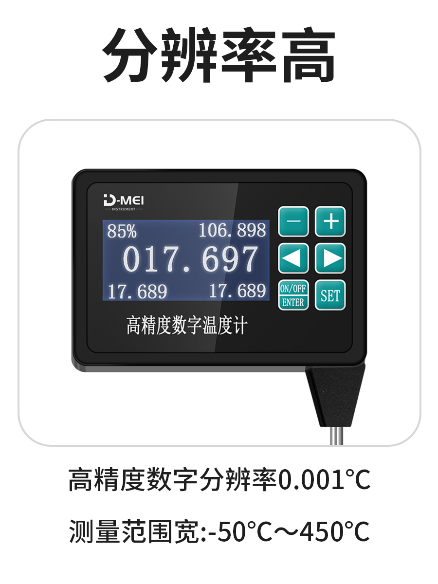 高精度數字溫度計,是泰安德美機電設備有限公司開(kāi)發(fā)的高精度智能溫度儀器。通過(guò)先進(jìn)的算法設計,高性能的感溫元件和電子元器件應用,確保優(yōu)異的長(cháng)期穩定性;旋轉連接件能夠讓顯示部分90度旋轉,方便觀(guān)測;它具有測量精度高、使用方便、現場(chǎng)校準、安全環(huán)保等優(yōu)點(diǎn)。