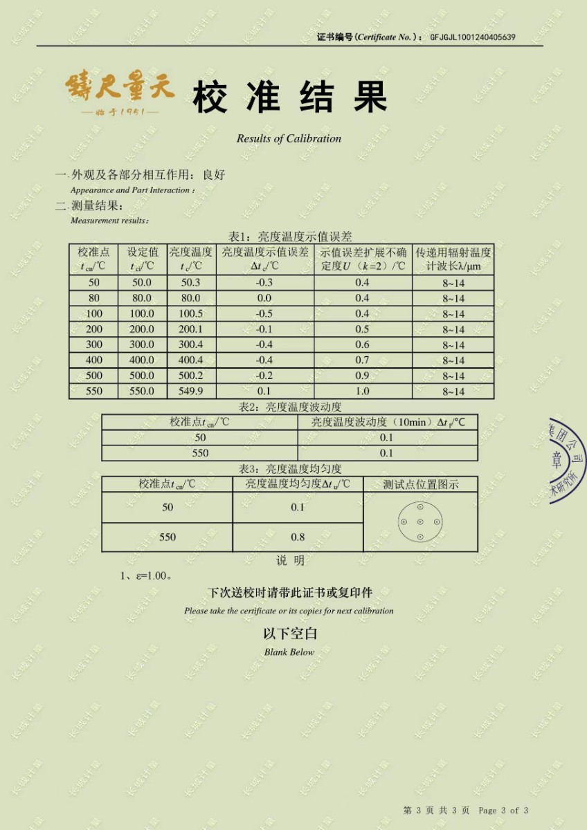 黑體爐校準證書(shū) 2024-4-24 本文被閱讀 8897 次