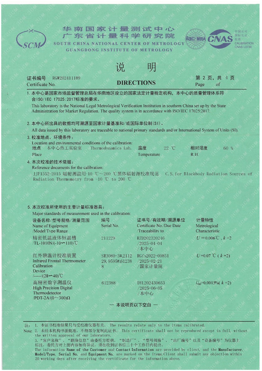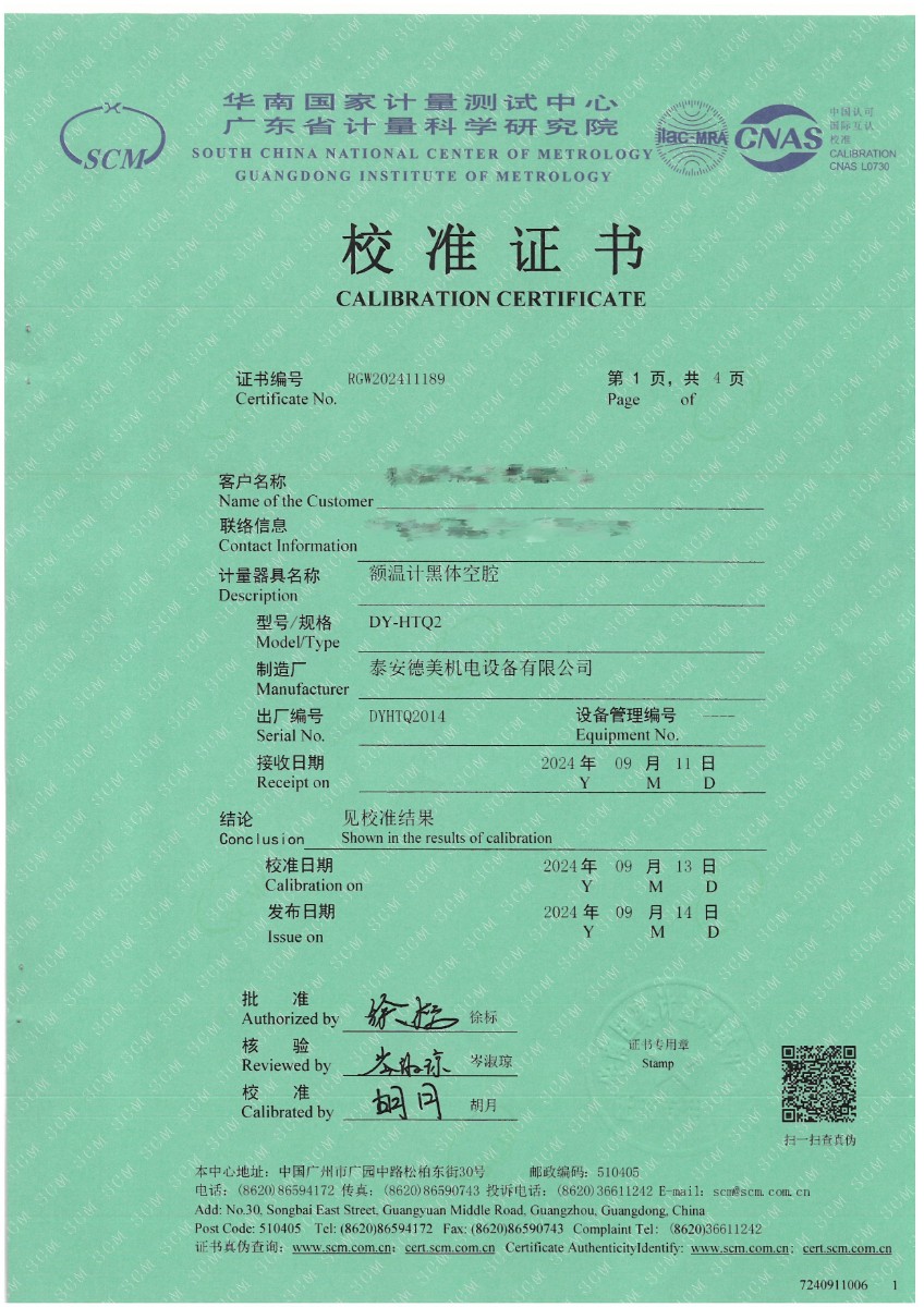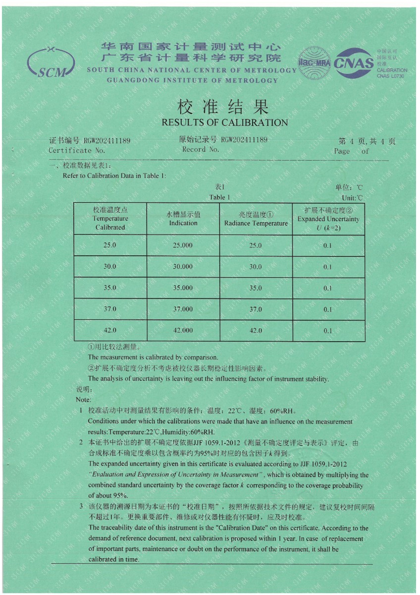 額溫計黑體空腔校準證書(shū) 2024-9-21 本文被閱讀 6982 次