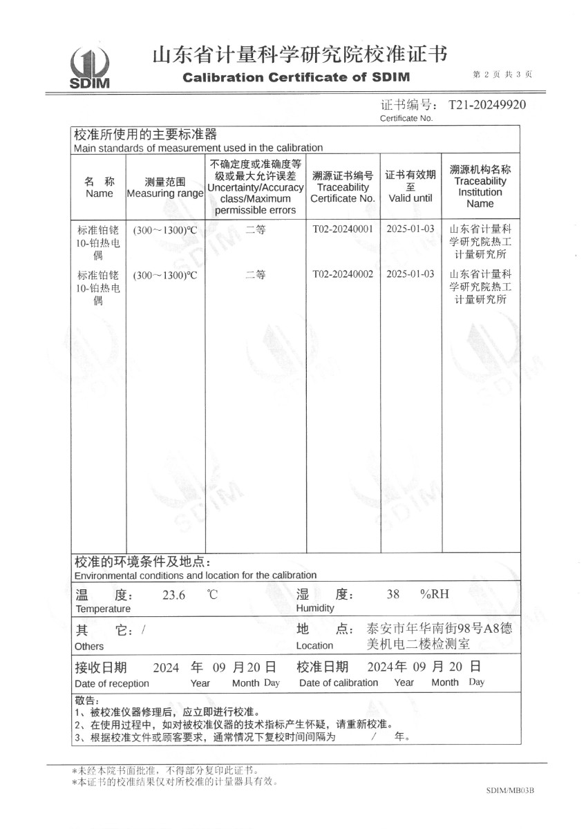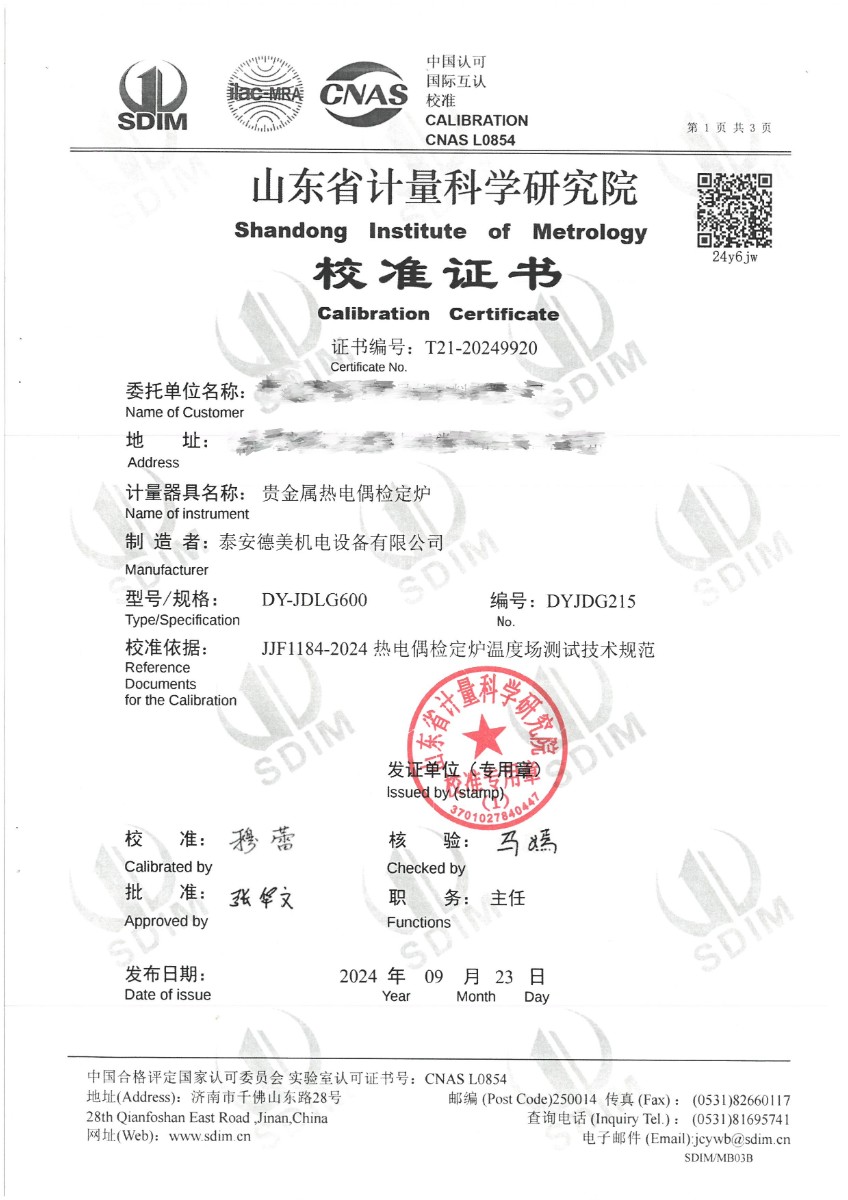 貴金屬熱電偶檢定爐(300~1000℃)校準證書(shū) 2024-9-24 本文被閱讀 6665 次