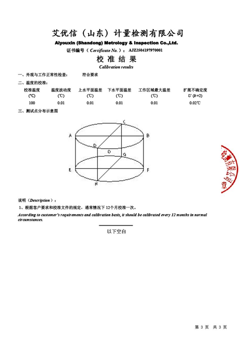 上一條:干體溫度校驗爐(300-1200℃)校準證書(shū)下一條:溫濕度檢定箱校準證書(shū)