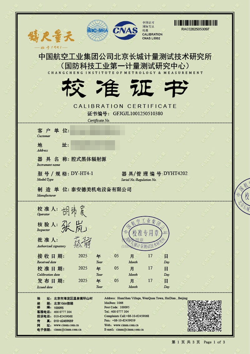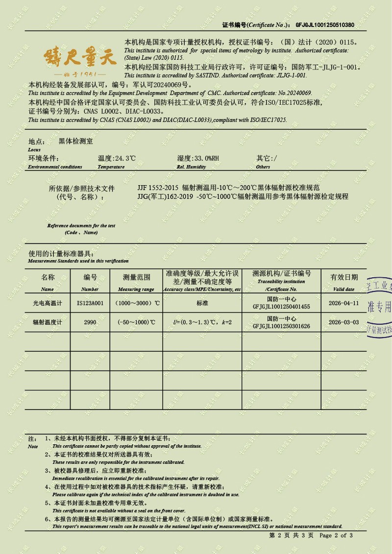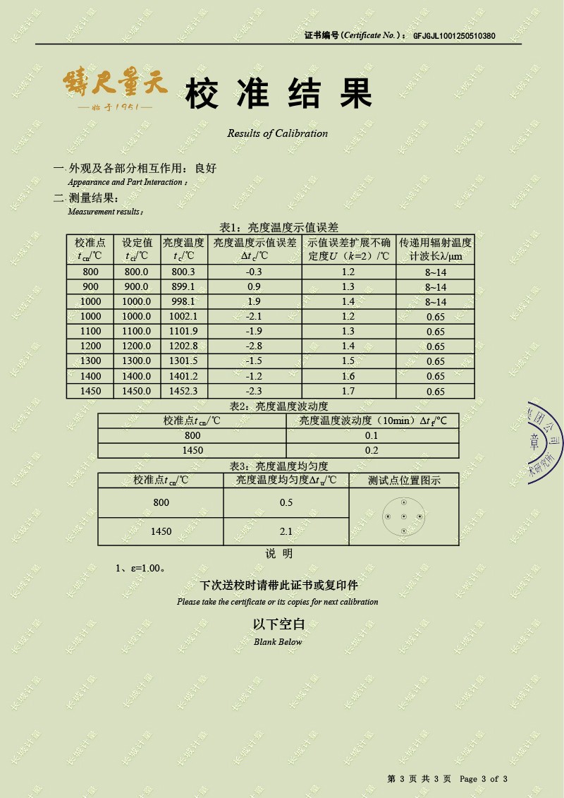 腔式黑體輻射源(800-1450℃)校準證書(shū) 2025-5-28 本文被閱讀 3292 次