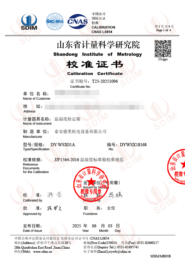 溫濕度檢定箱(-20-65℃)校準證書(shū) 2025-6-5 本文被閱讀 3613 次