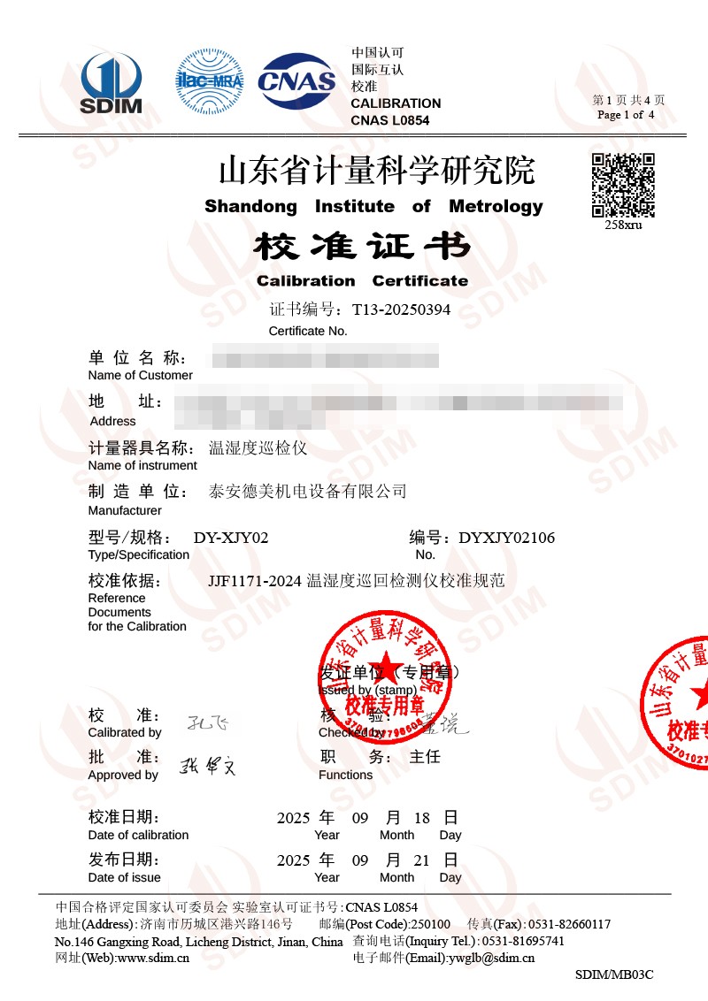 溫濕度巡檢儀校準證書(shū) 2025-9-23 本文被閱讀 1371 次