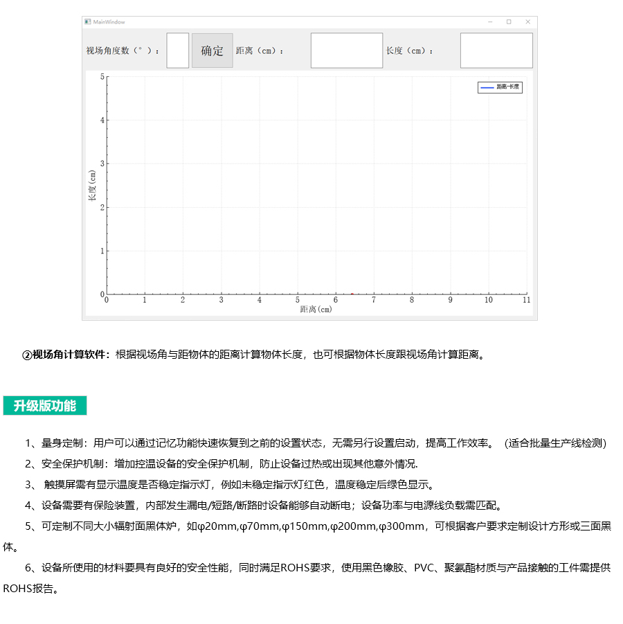 5)大面源等溫黑體輻射面,發(fā)射率出廠(chǎng)默認0.95,如需要不同發(fā)射率可在0.96-0.99之間發(fā)射率可調。