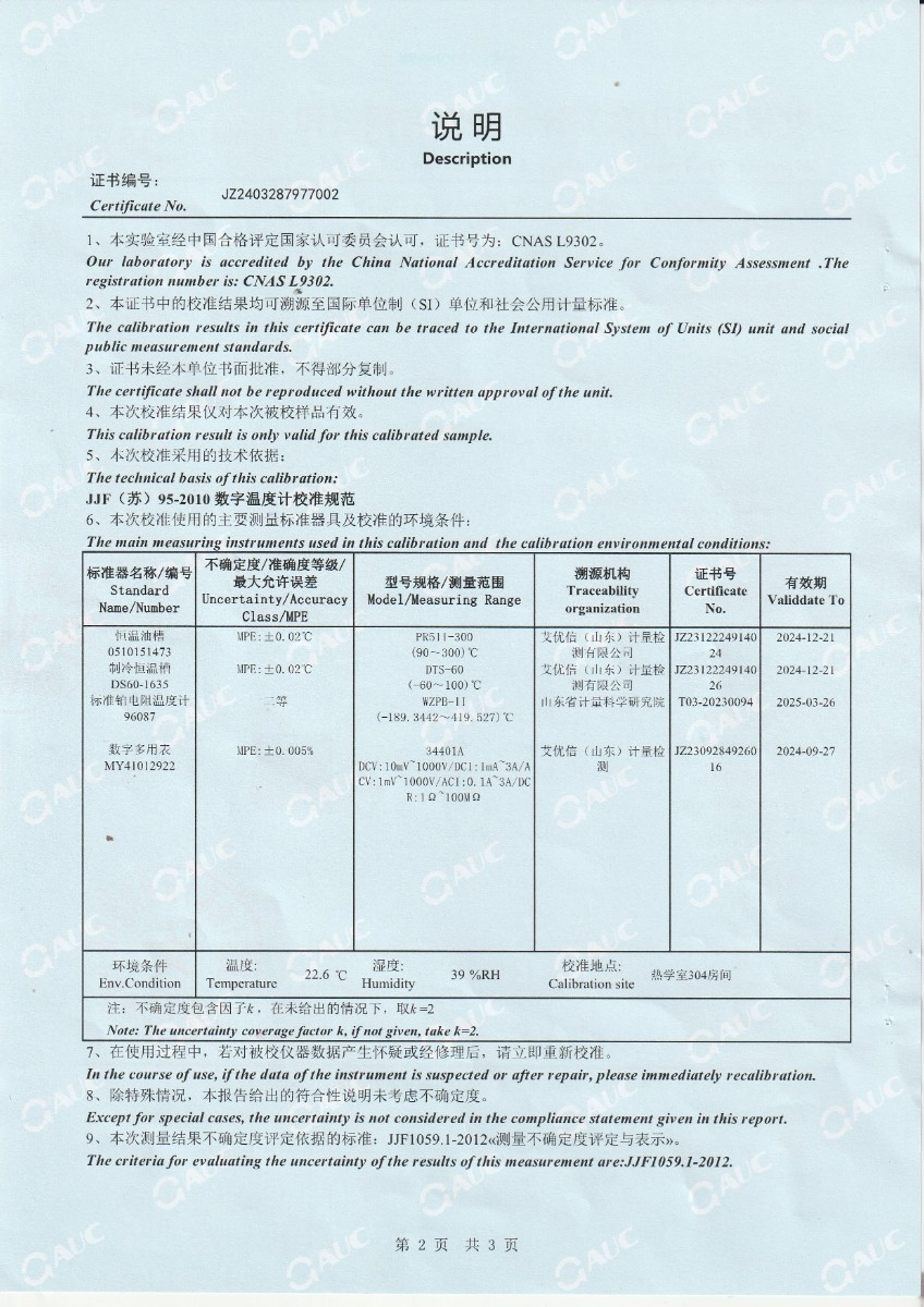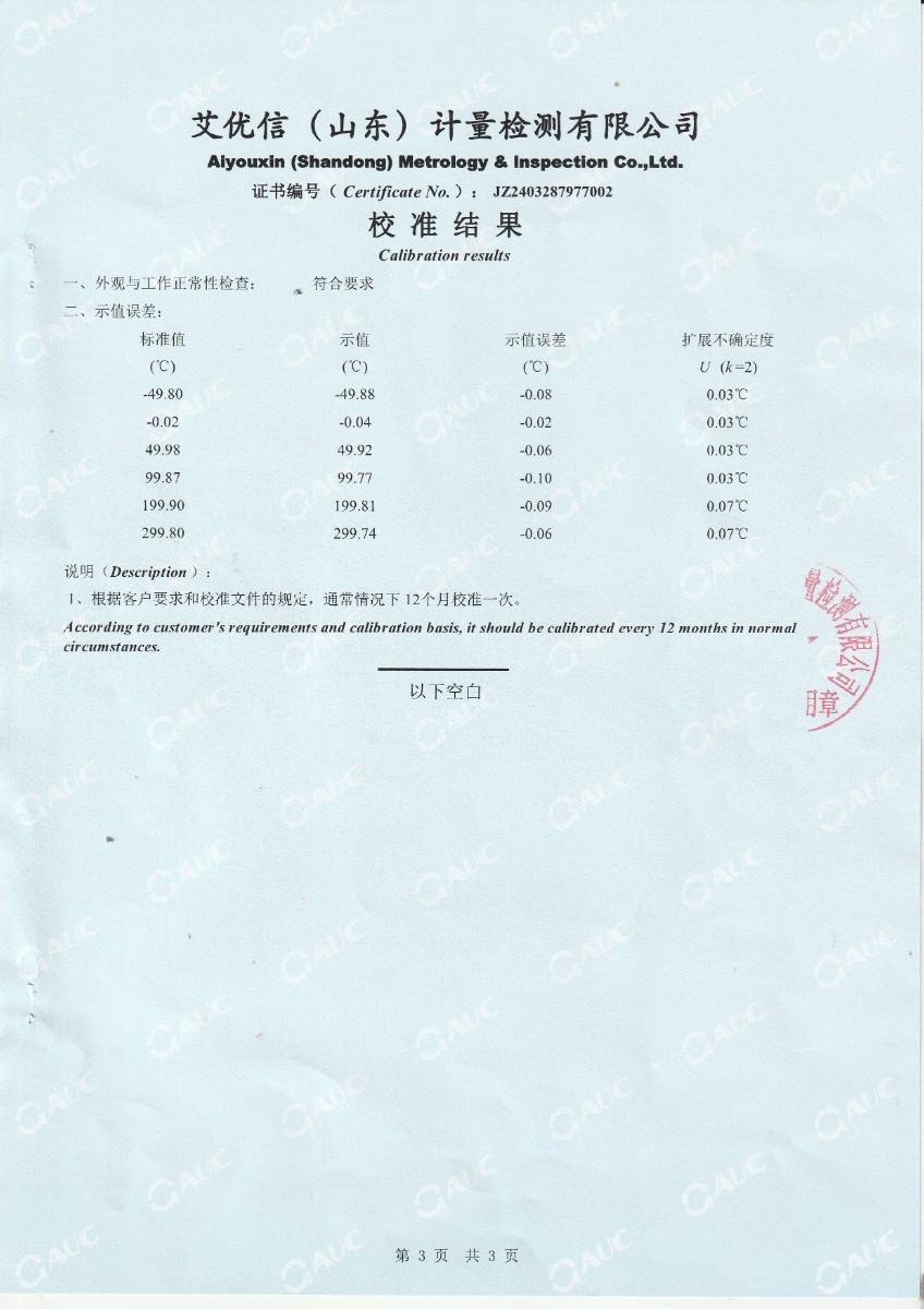 高精度數字溫度計校準證書(shū)
