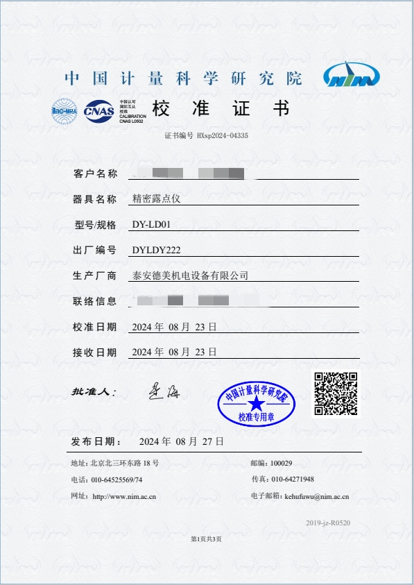 露點(diǎn)儀校準證書(shū) 2024-9-3 本文被閱讀 7454 次