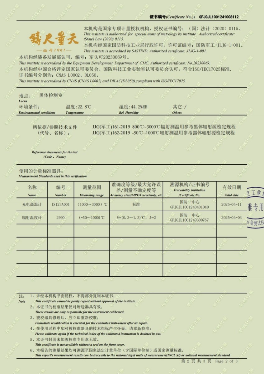 高溫黑體爐(700-1600℃)校準證書(shū)