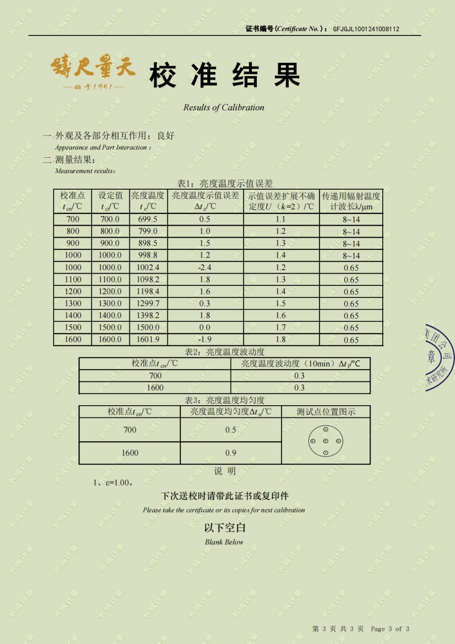高溫黑體爐(700-1600℃)校準證書(shū) 2024-11-6 本文被閱讀 6545 次
