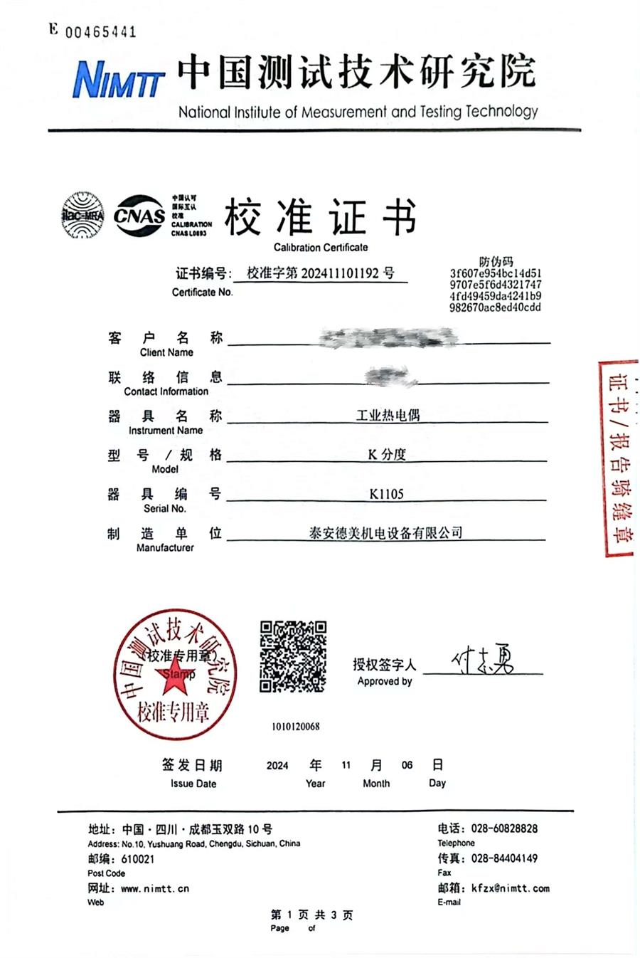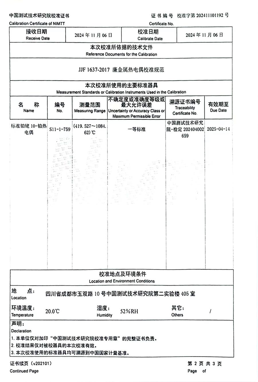 K分度熱電偶校準證書(shū) 2024-11-9 本文被閱讀 7220 次