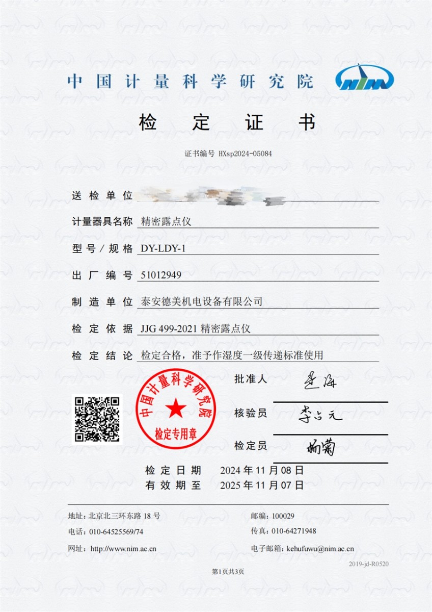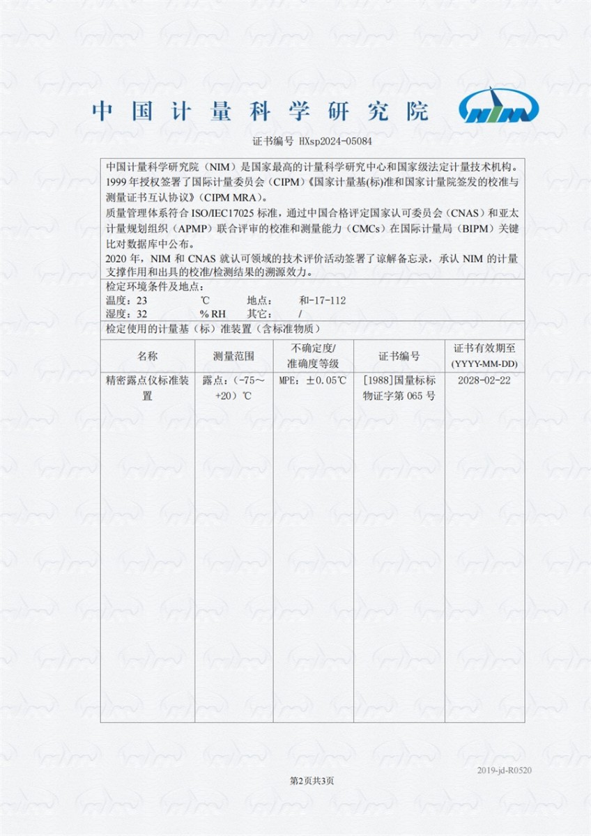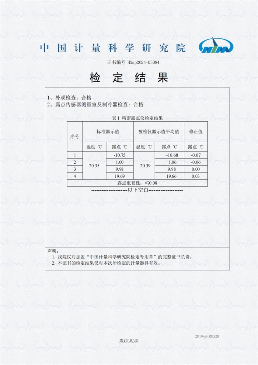 冷鏡式露點(diǎn)儀檢定證書(shū)