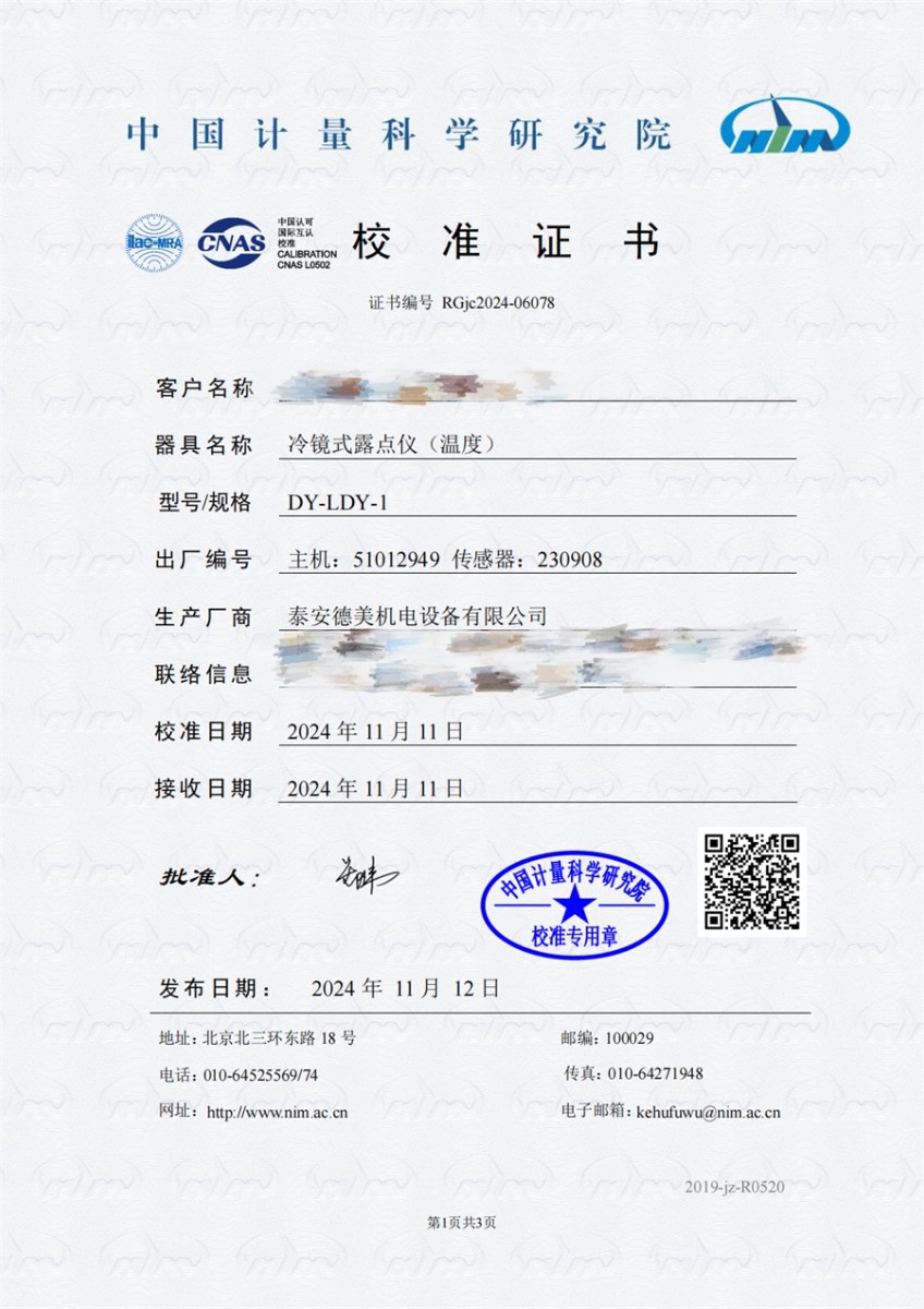 冷鏡式露點(diǎn)儀校準證書(shū) 2024-11-21 本文被閱讀 7400 次
