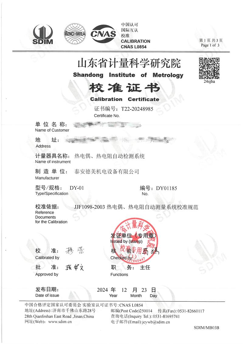 熱電偶、熱電阻自動(dòng)檢測系統校準證書(shū) 2024-12-26 本文被閱讀 5746 次