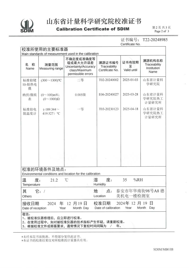 熱電偶、熱電阻自動(dòng)檢測系統校準證書(shū)
