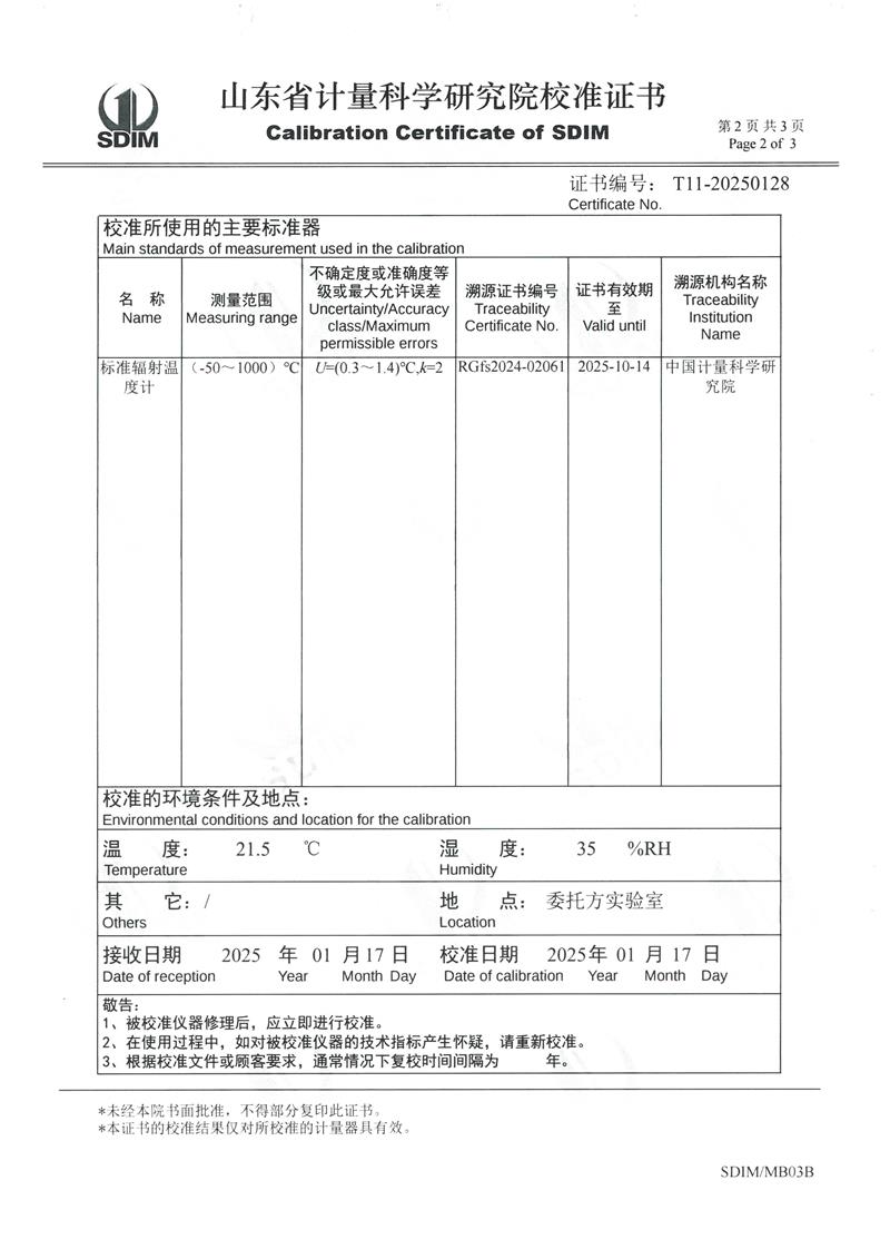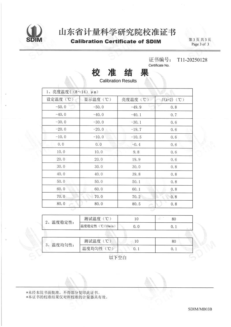 | 上一條:表面溫度計校準裝置(室溫+5℃~400℃)校準證書(shū) | 下一條:智能干體儀(六位半精度)校準證書(shū) |