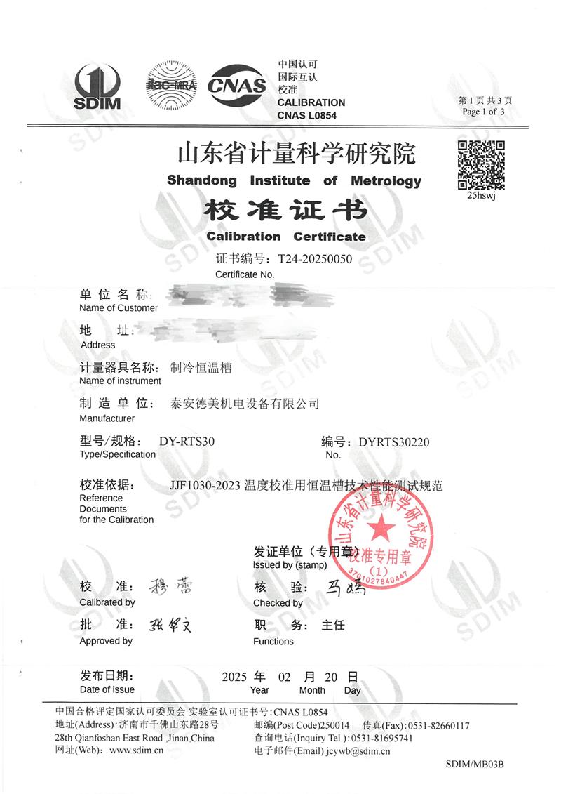 | 上一條:恒溫油槽(70~300℃)校準證書(shū) | 下一條:DY-WSX04M溫度檢定箱(-30℃-50℃) |