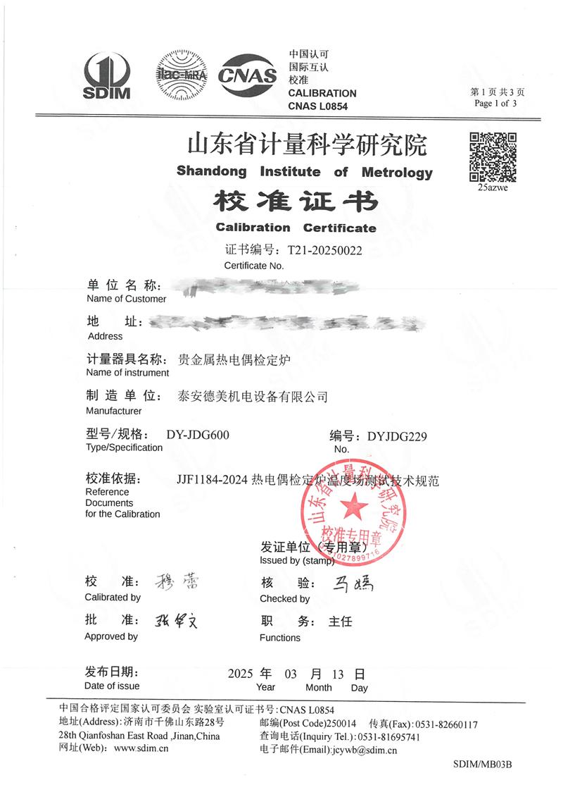 | 上一條:表面溫度計校準裝置(室溫+5~400℃)校準證書(shū) | 下一條:露點(diǎn)儀檢定、校準證書(shū) |