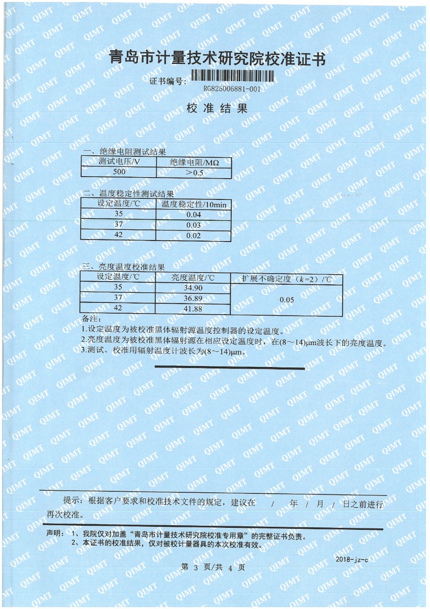 耳溫計黑體空腔校準證書(shū) 2025-3-25 本文被閱讀 4201 次